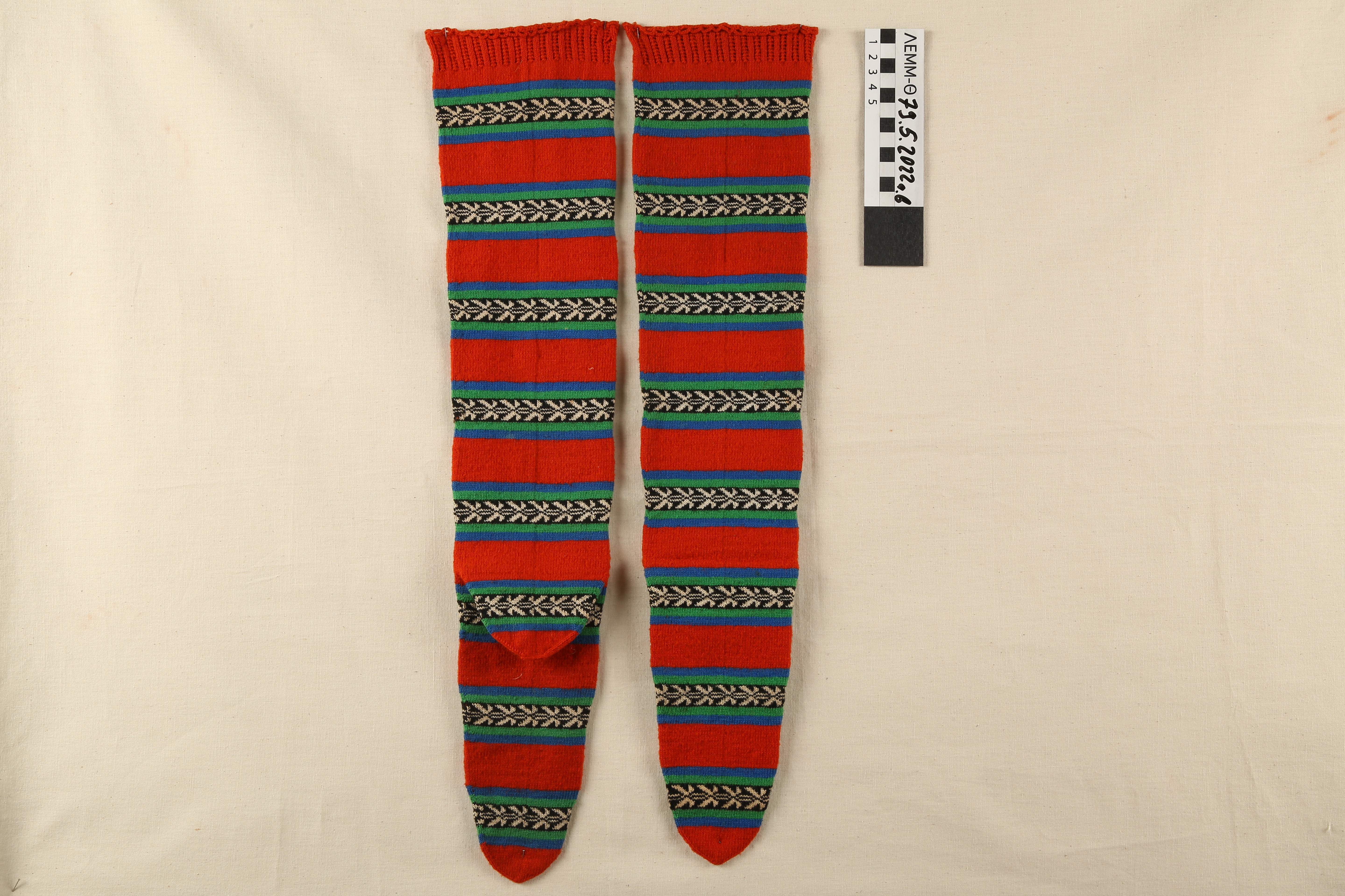 Κάλτσες - ζευγάρι κάλτσες, πορτοκαλί με μπλε, πράσινες και μαύρες ρίγες