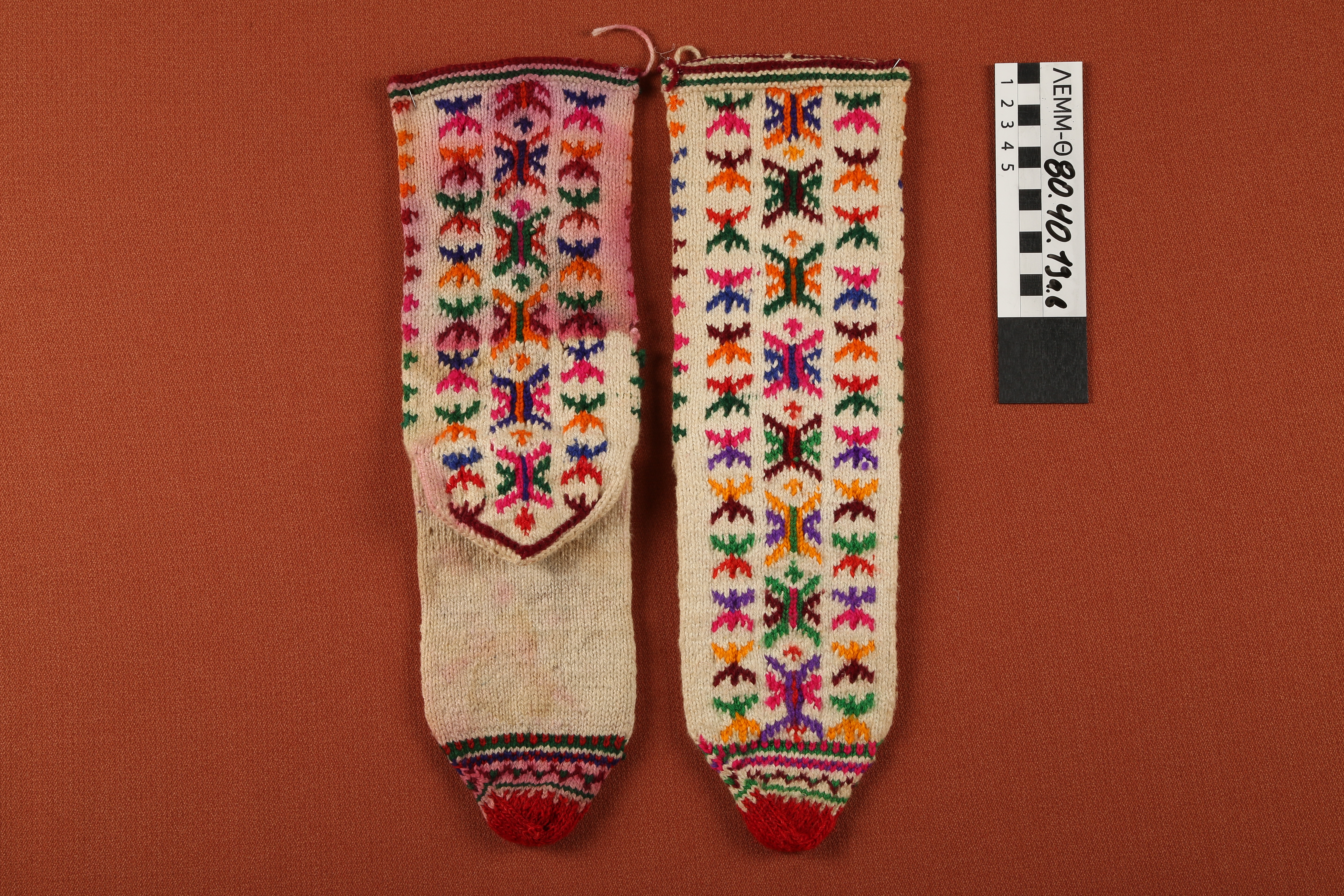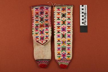 Κάλτσες - ζευγάρι, πλεκτές, υπόλευκες κάλτσες με πολύχρωμο κέντημα