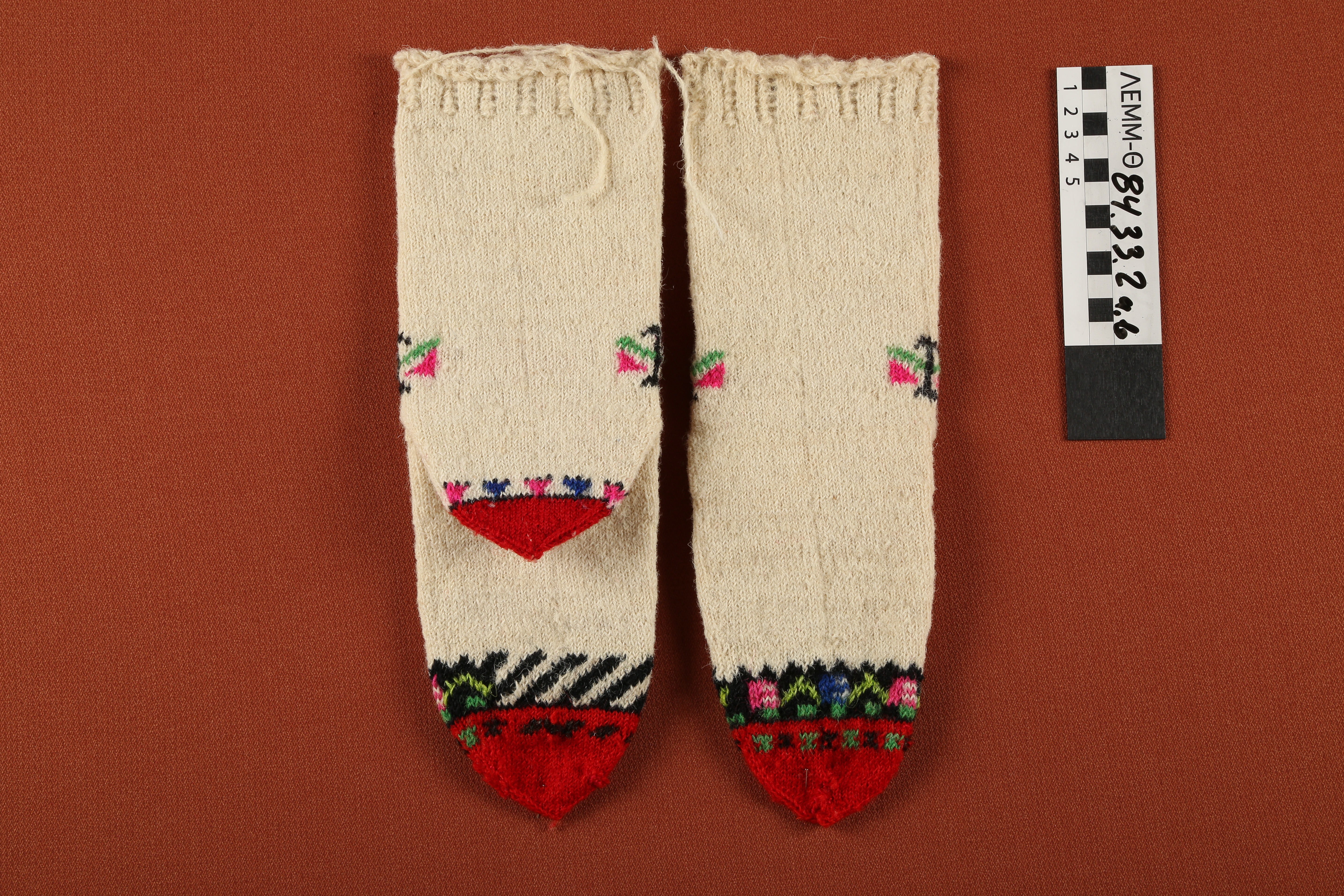 Κάλτσες - κοντές, μάλλινες, υπόλευκες κάλτσες,με κεντημένα πολύχρωμα μοτίβα στις μύτες και στις φτέρνες