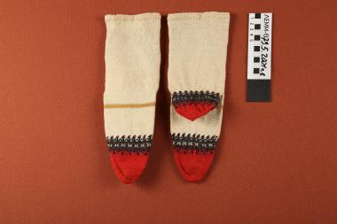 Κάλτσες - υπόλευκες, μάλλινες κάλτσες με κεντημένες κόκκινες μύτες και φτέρνες και