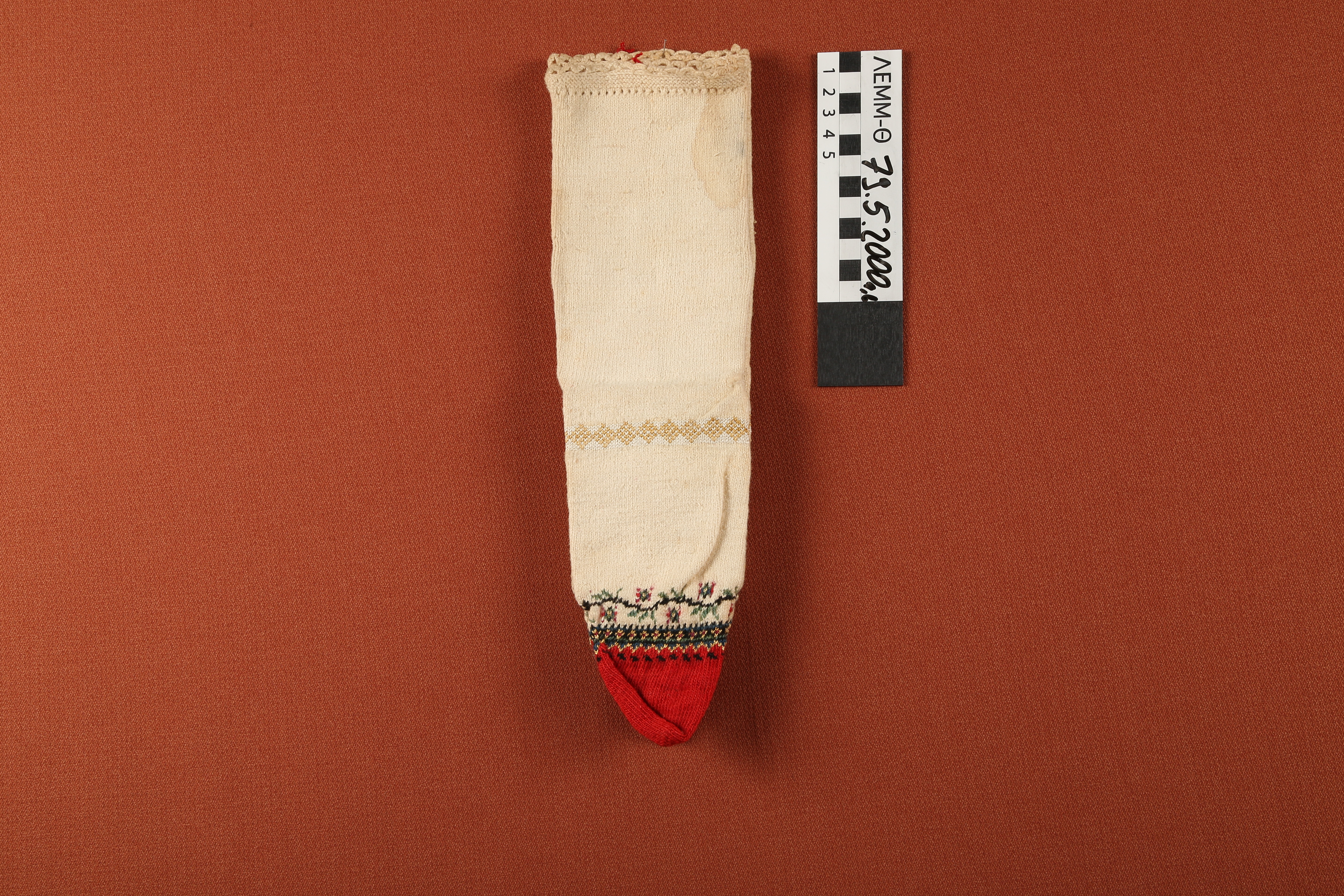 Κάλτσες - υπόλευκες, βαμβακερές κάλτσες με κόκκινες μάλλινες μύτες και φτέρνες, διακοσμημένες με ανθικό κέντημα