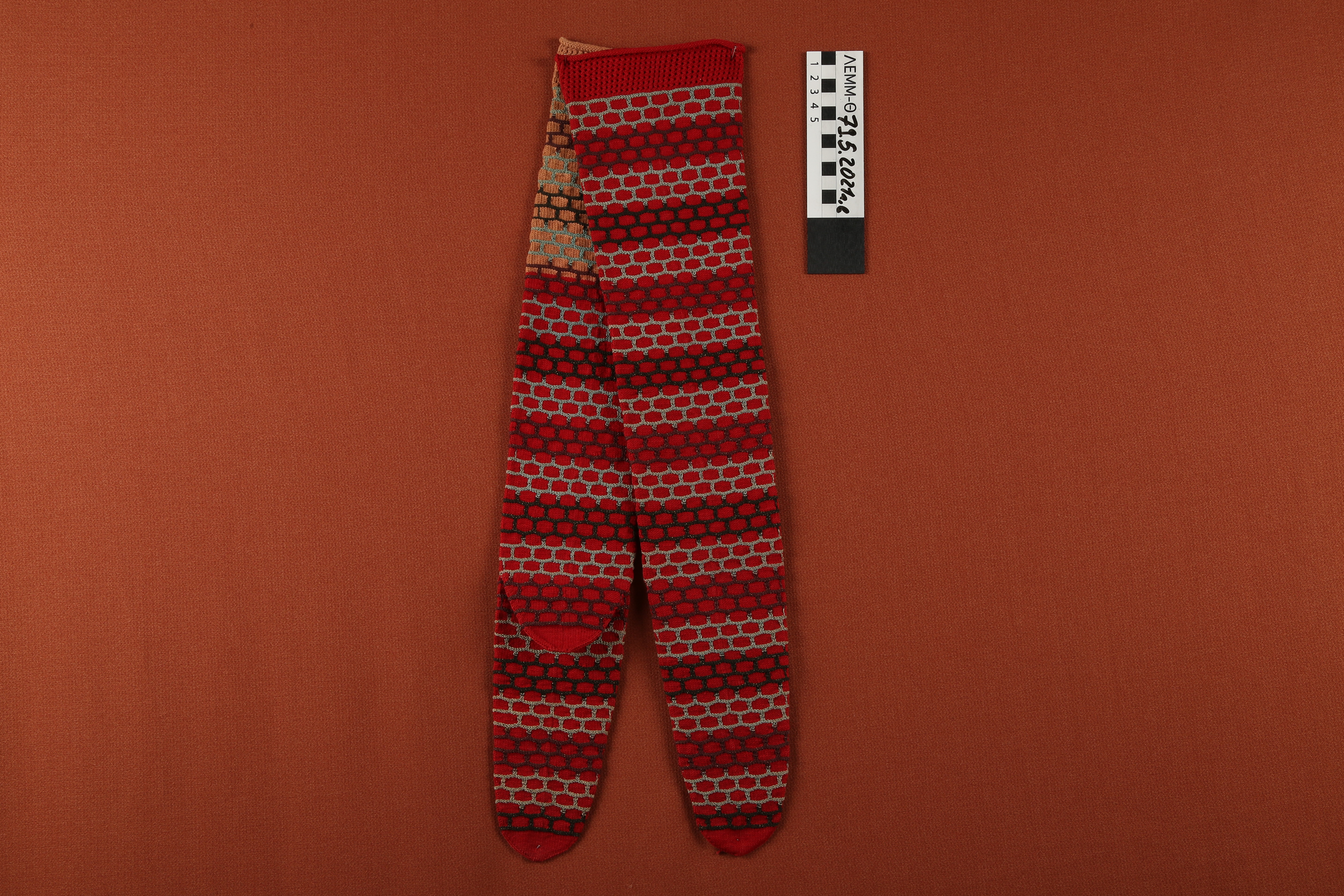 Κάλτσες - ζεύγος, βαμβακερές, κόκκινες κάλτσες με κυψελωτό κέντημα στην πλέξη