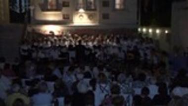 Οι δύο χορωδίες, του Ιδρύματος Ανταλλαγέντων της Συνθήκης της Λωζάννης και του Δήμου Καλαμαριάς συμπράττουν στην τελετή εγκαινίων της έκθεσης.