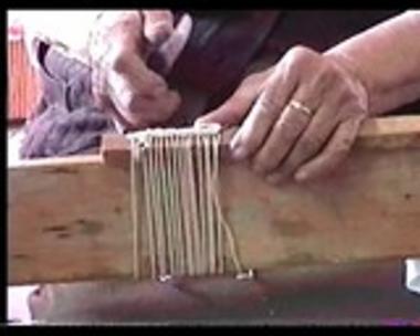 Η Ειρήνη Μπάμπα από τον Αλιάκμονα Ν. Κοζάνης παρουσιάζει τη διαδικασία προετοιμασίας του αργαλειού, ξεκινώντας από το "σταύρωμα", την προετοιμασία του μιταριού.