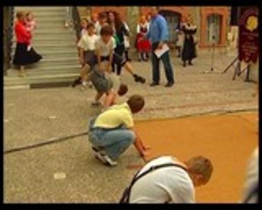 Traditional games performed by a folk group from Lefkopigi as part of the celebration titled: Six days, each one a celebration"