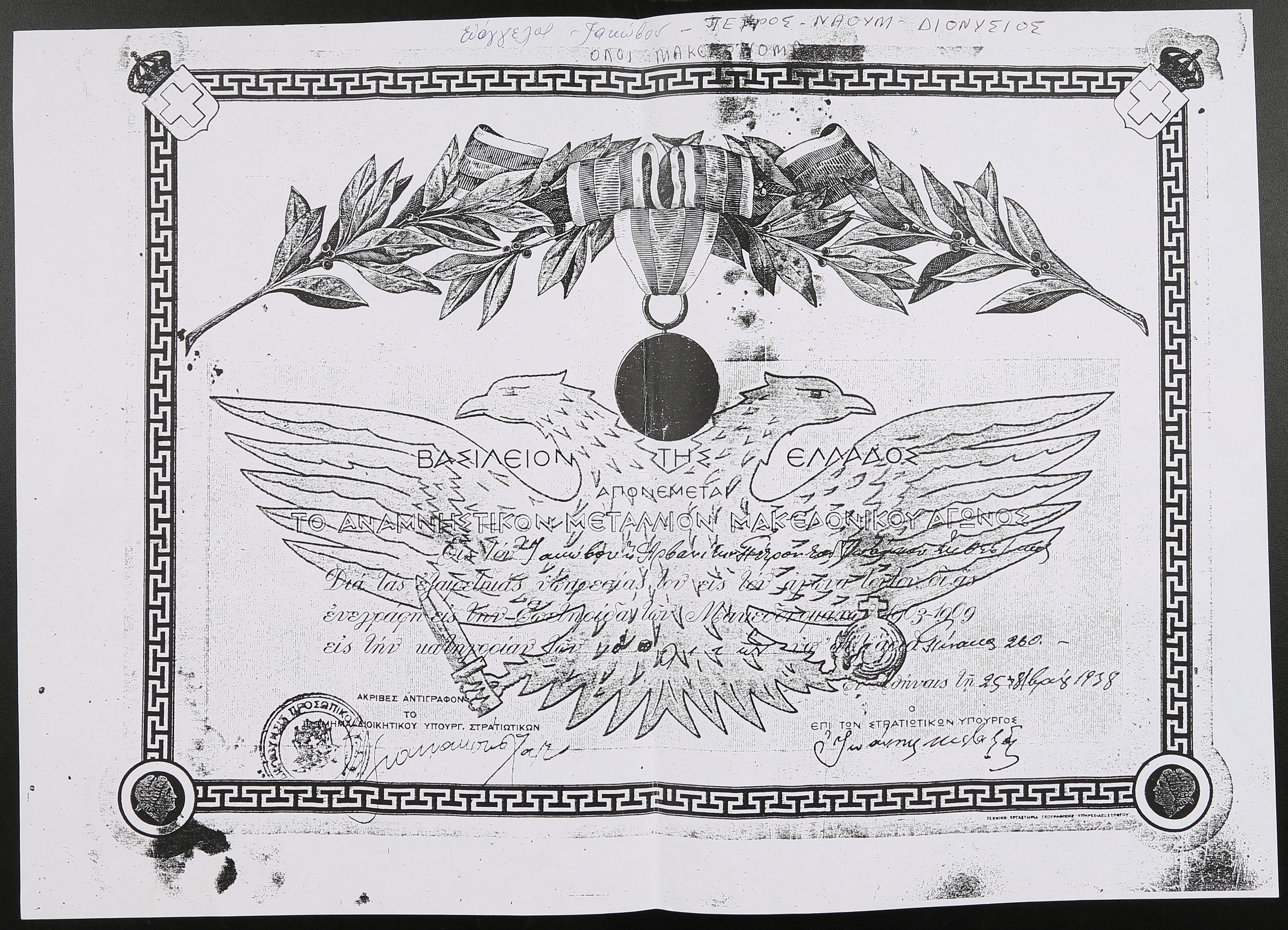 Απονομή μεταλλίου Μακεδονικού Αγώνα, 1938.