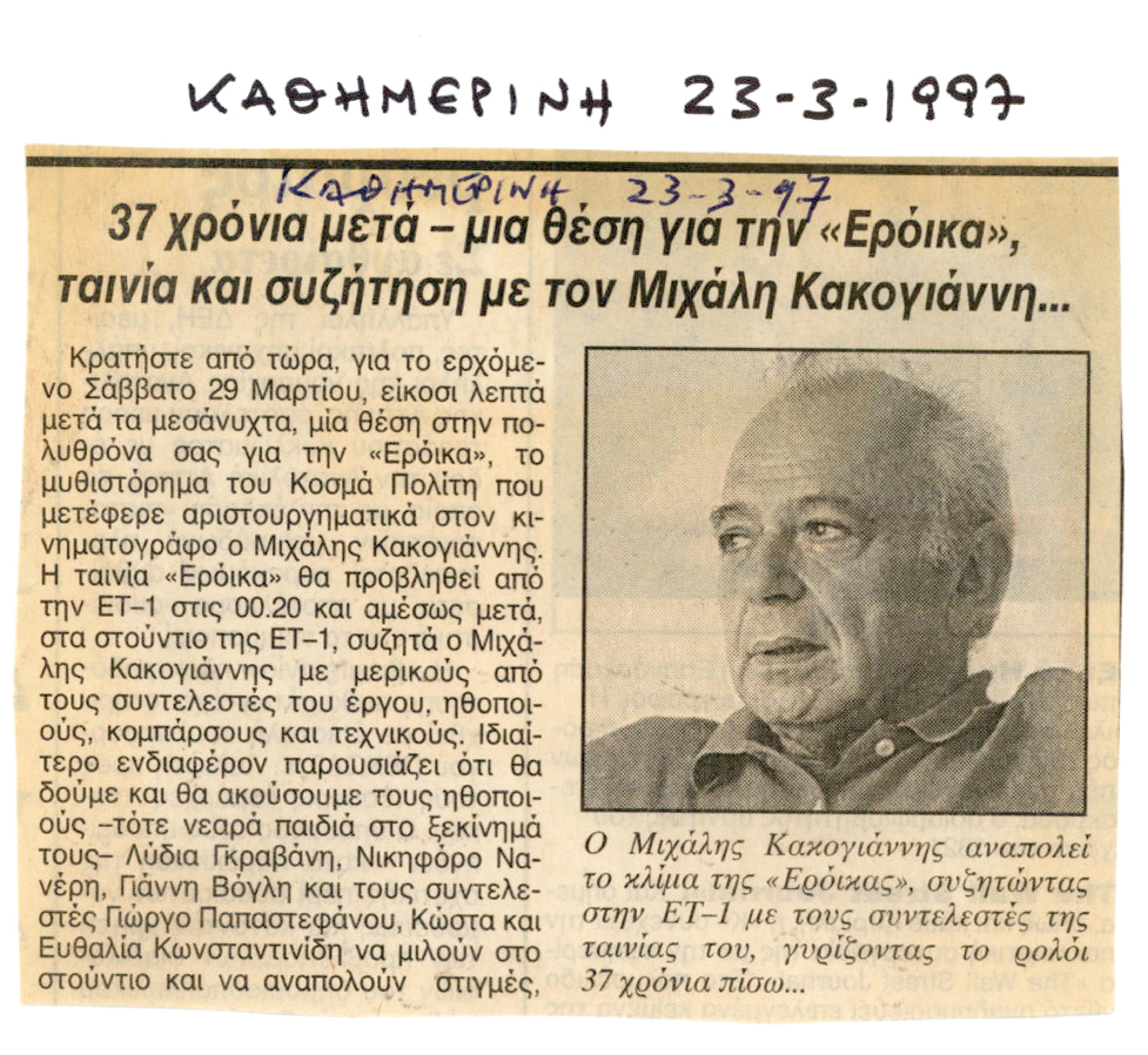 Για πρώτη φορά στην TV η ταινία του Μιχάλη Κακογιάννη