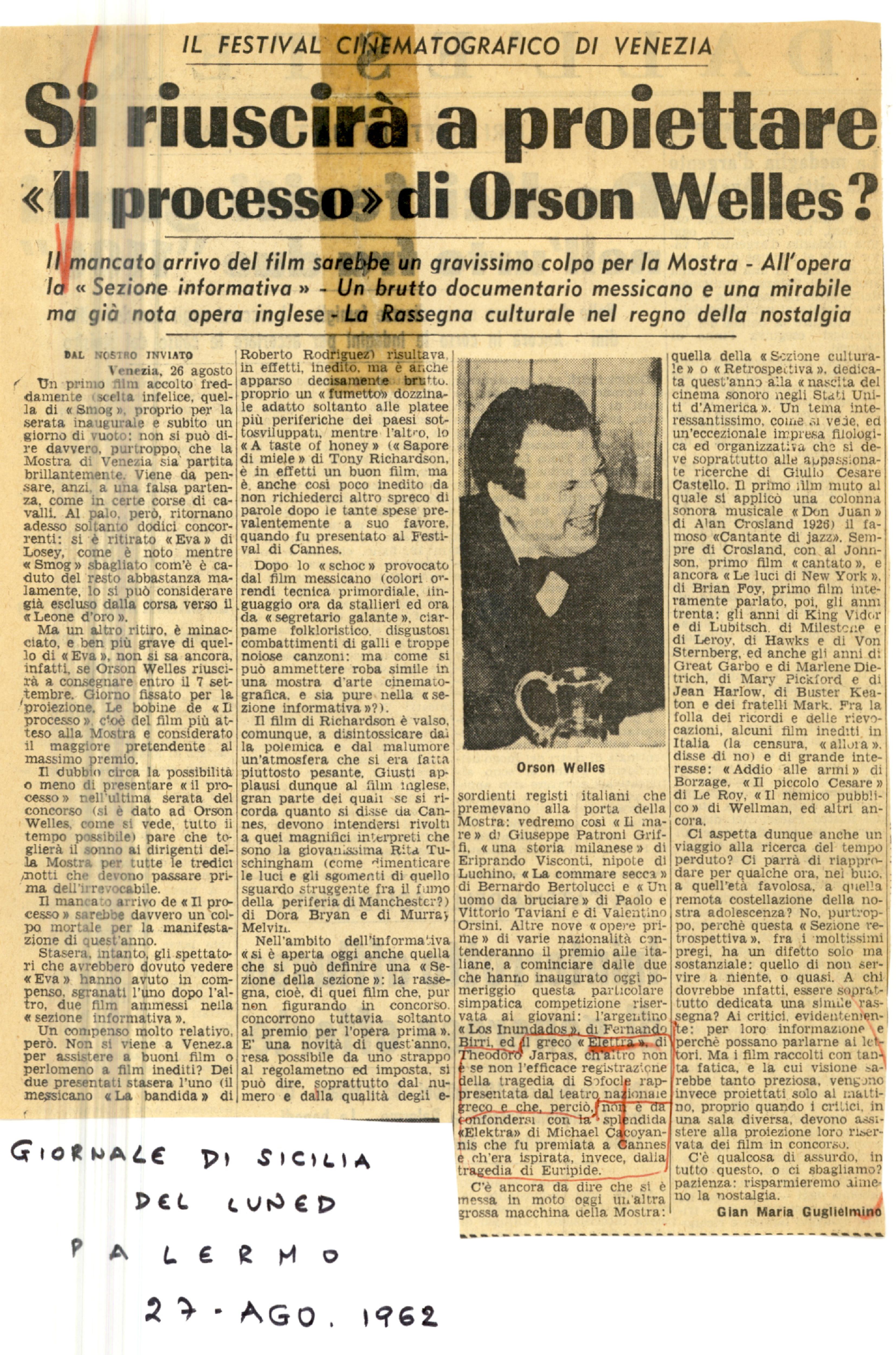 Si riuscirà a proiettare «Il processo» di Orson Welles?
