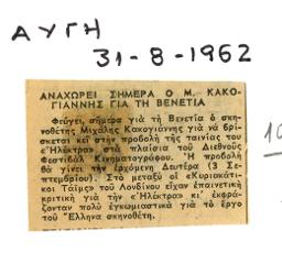 Αναχωρεί σήμερα ο Μ. Κακογιάννης για τη Βενετία