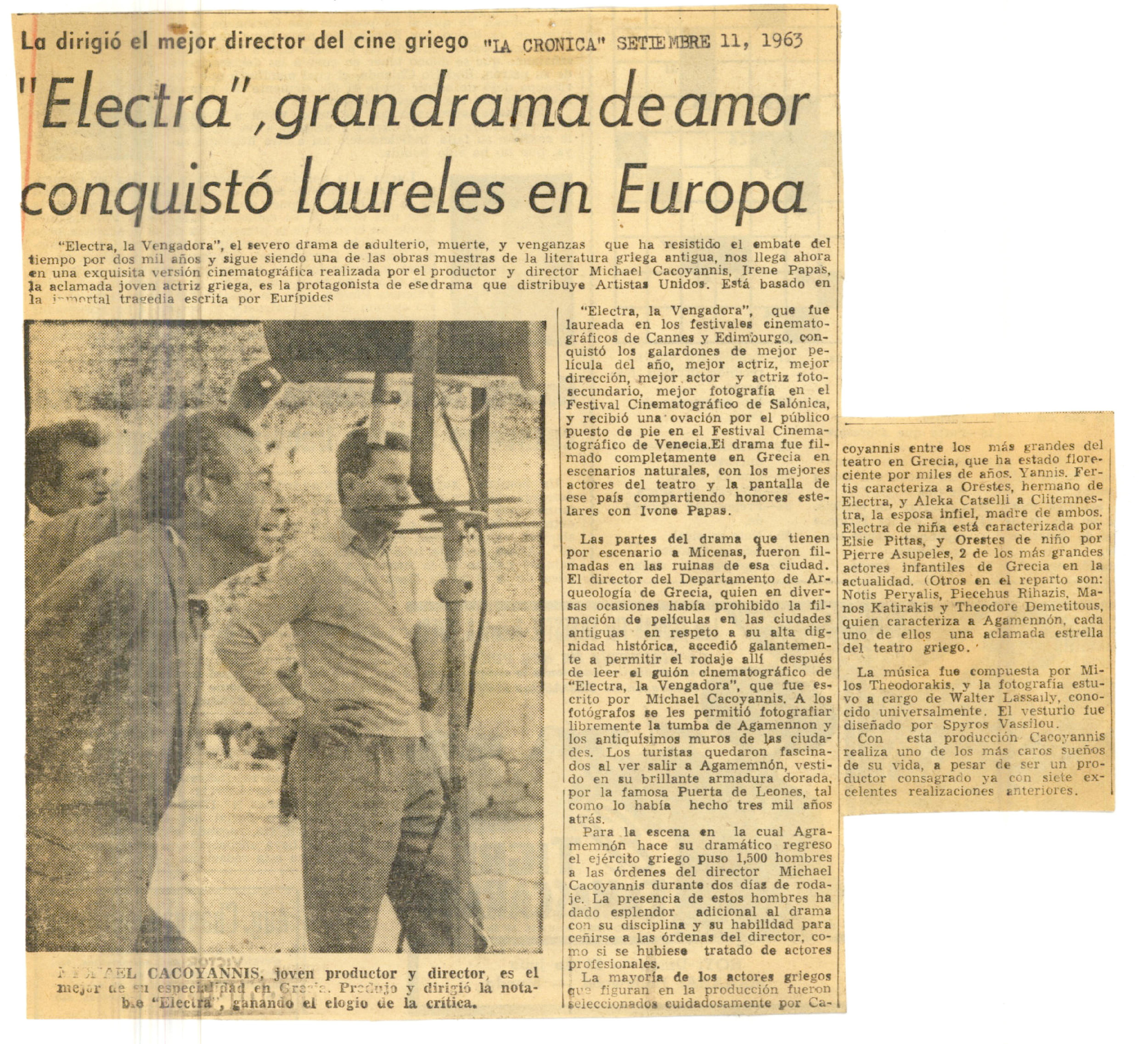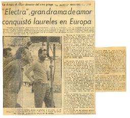 Electra, gran drama de amor conquistó laureles en Europa