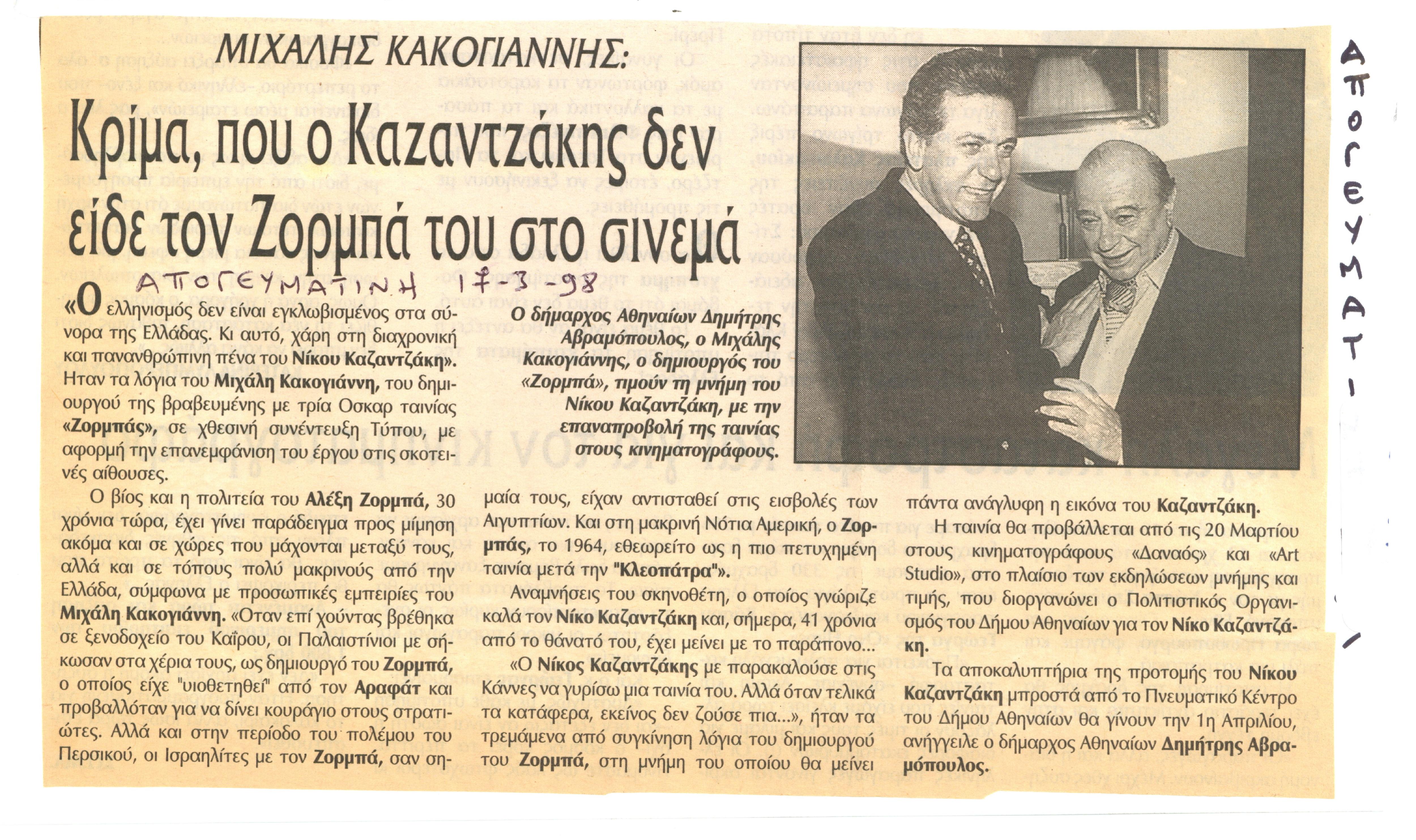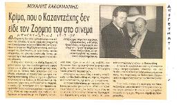 Μιχάλης Κακογιάννης: Κρίμα, που ο Καζαντζάκης δεν είδε τον Ζορμπά του στο σινεμά