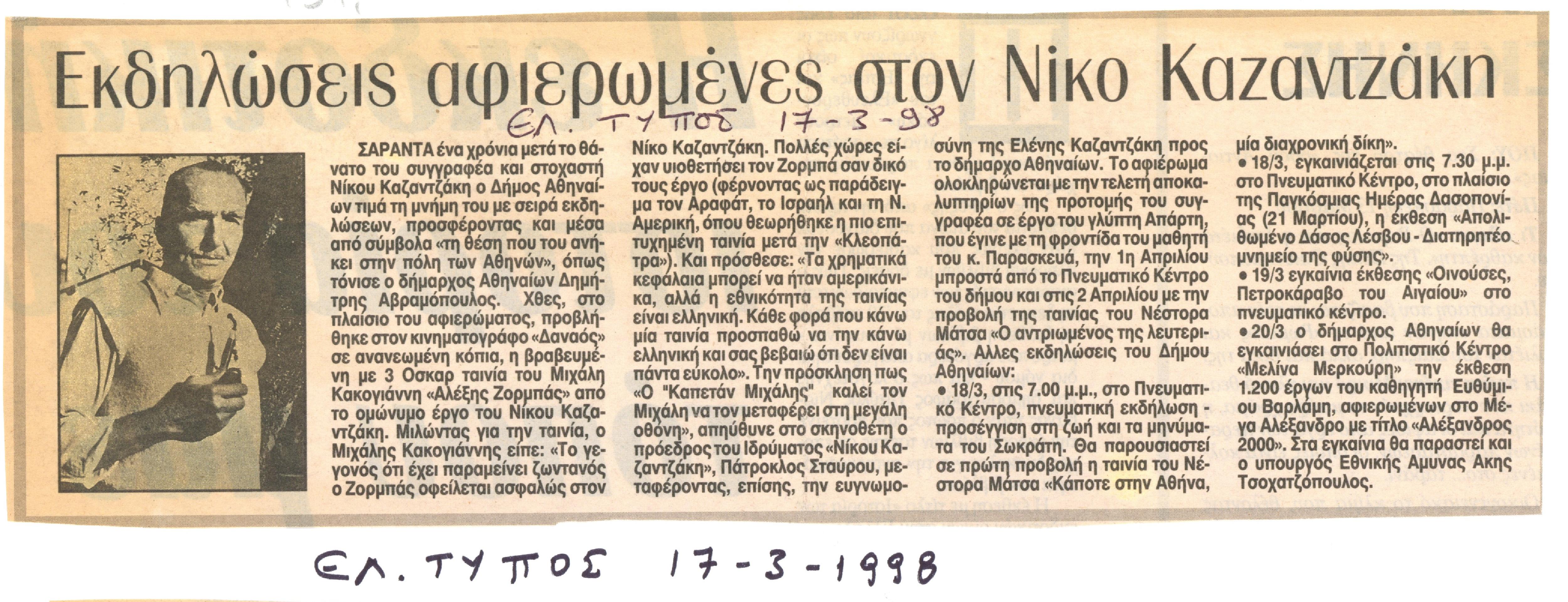 Εκδηλώσεις αφιερωμένες στον Νίκο Καζαντζάκη