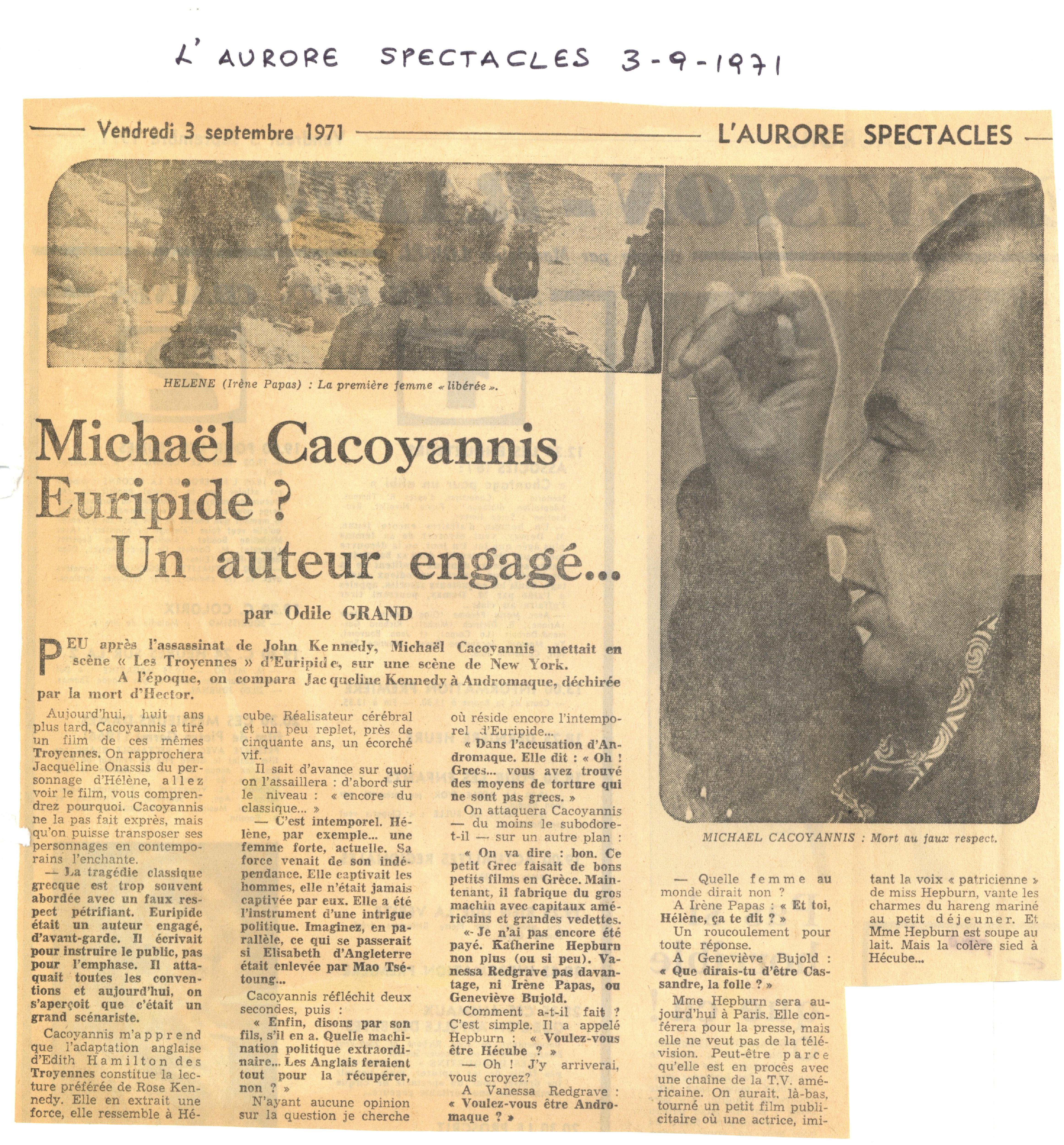 Michael Cacoyannis Euripide? Un auteur engagé…