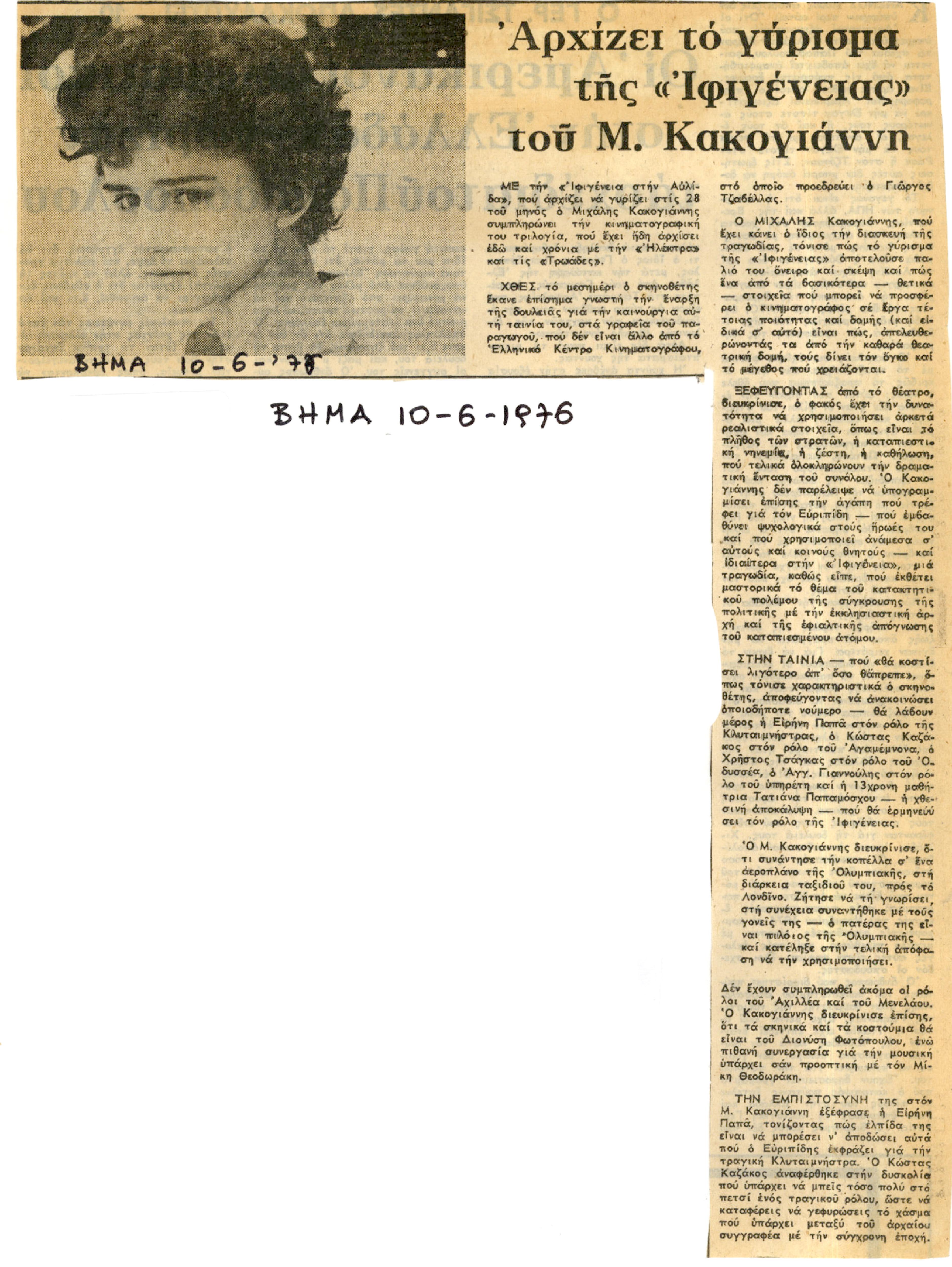 Αρχίζει το γύρισμα της «Ιφιγένειας» του Μ. Κακογιάννη