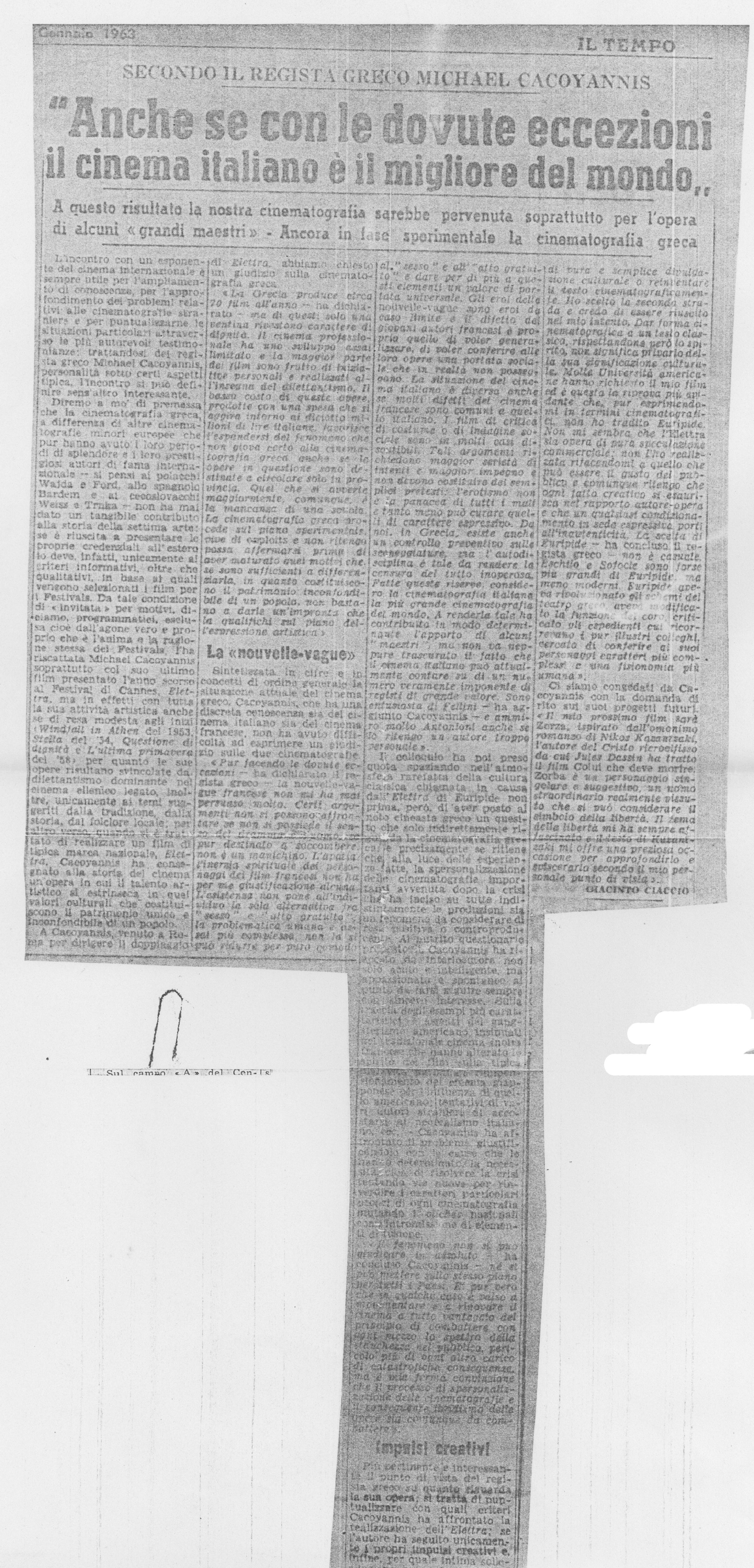 Secondo il regista Greco Michael Cacoyannis