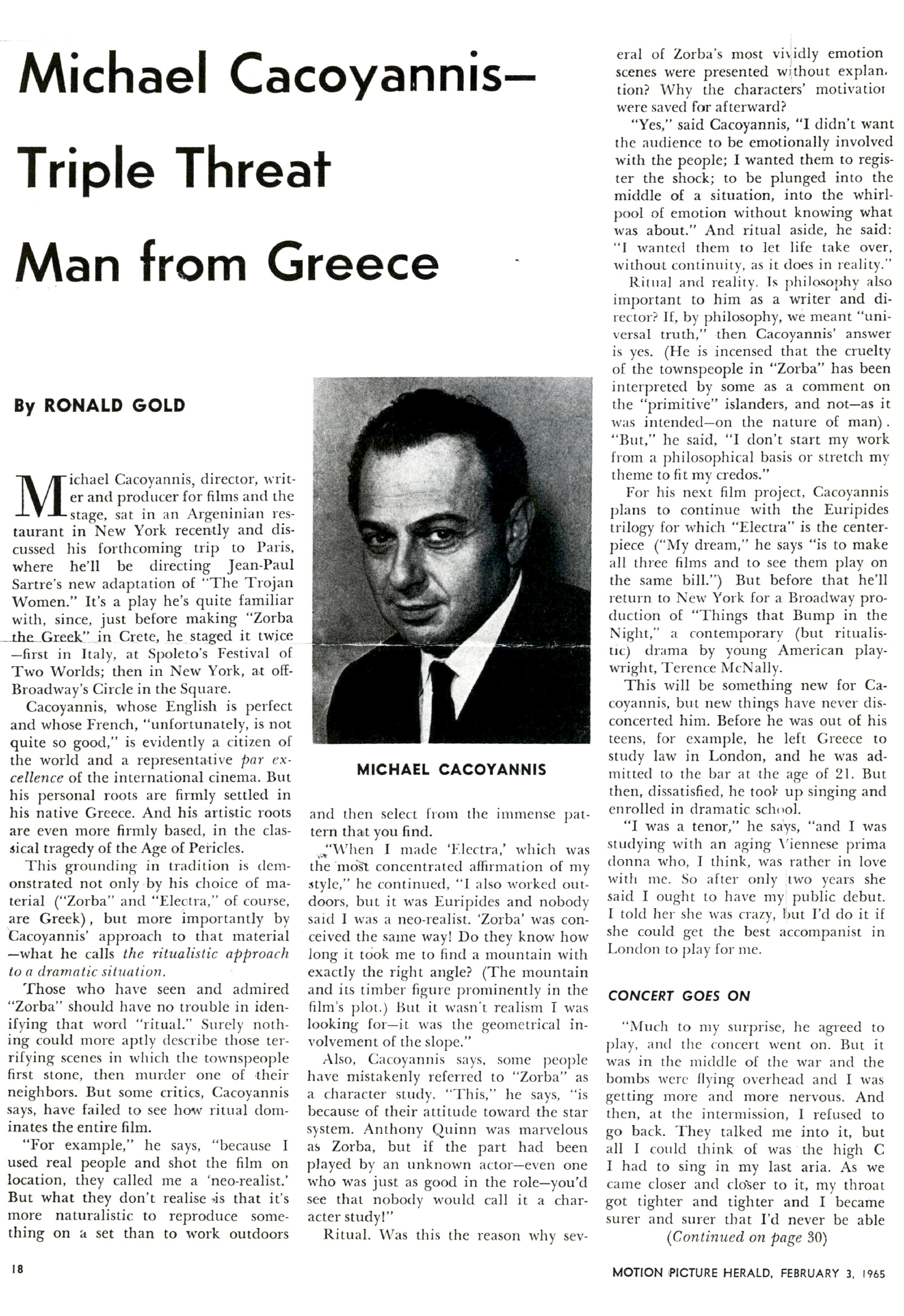 Michael Cacoyannis - Triple Threat Man from Greece