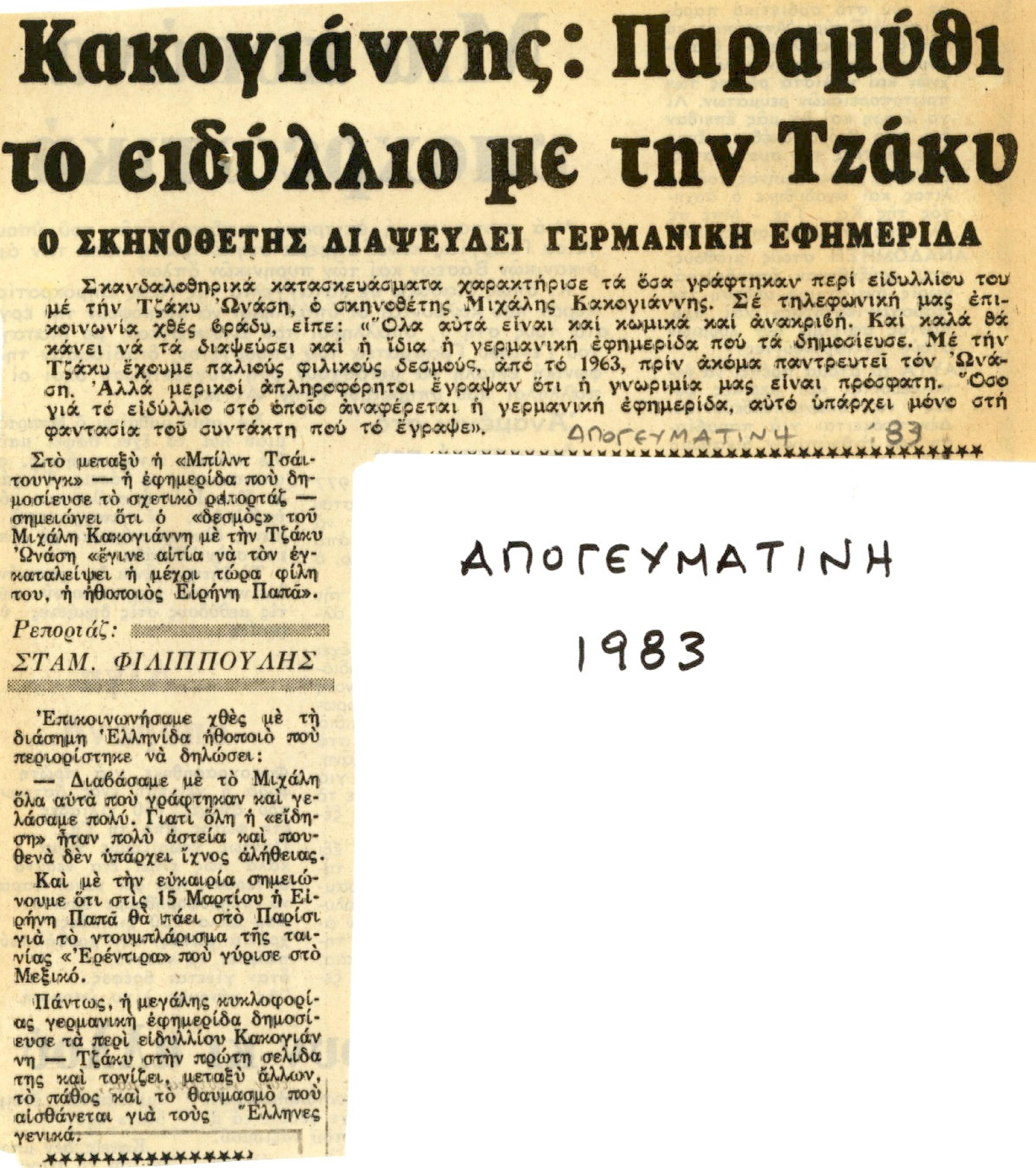 Κακογιάννης: Παραμύθι το ειδύλλιο με την Τζάκυ