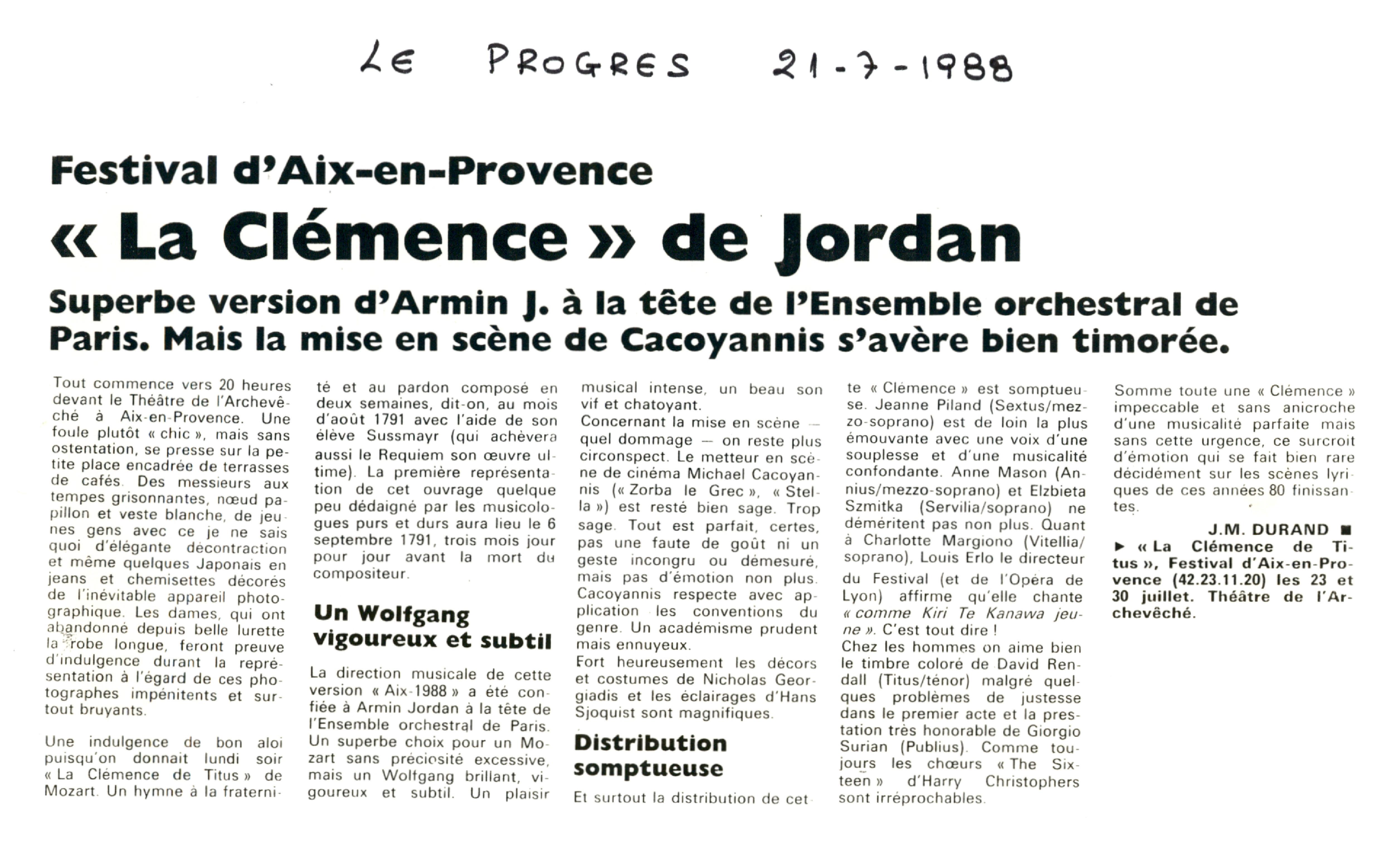 Festival d'Aix-en-Provence, «La Clémence» de Jordan