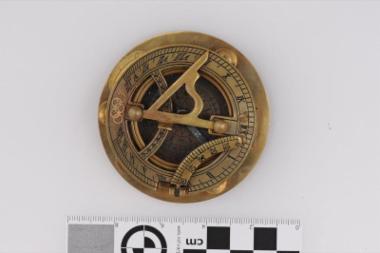 Πυξίδα Leica, επιτραπέζια, με τρία πόδια, φέρει κυκλικό καπάκι με τις ώρες, το οποίο έχει τους Ολυμπιακούς κύκλους. Έχει αλφάδι και άξονα με μοίρες. Στο κάτω μέρος έχει τον γερμανικό αετό με τη ναζιστική σβάστικα.