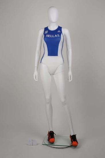 Κορμάκι λευκού και μπλε χρώματος που φέρει την ελληνική σημαία στην Α' όψη. Άνηκε στη δρομέα Ζωή Νερατζίδου.