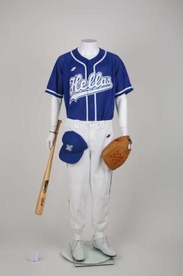 Αθλητικό παντελόνι μπέιζ μπολ λευκού χρώματος με μπλε ρίγα στο πλάι