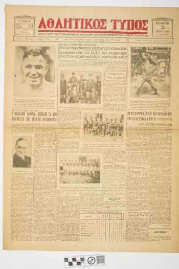Εφημερίδα "ΑΘΛΗΤΙΚΟΣ ΤΥΠΟΣ". Αθλητική εφημερίδα που φέρει τον τίτλο θέματος στο πρωτοσέλιδο "ΕΝΑΣ ΔΙΑΓΩΝΙΣΜΟΣ ΠΟΥ ΑΝΕΣΤΑΤΩΣΕ ΤΑ ΣΩΜΑΤΕΙΑ- ΣΥΝΑΓΕΡΜΟΣ ΕΙΣ ΤΑΣ ΤΑΞΕΙΣ ΤΩΝ ΑΝΕΠΙΣΗΜΩΝ ΣΩΜΑΤΕΙΩΝ-ΠΟΔΟΣΦΑΙΡΙΣΤΩΝ ΑΘΗΝΩΝ -ΠΕΙΡΑΙΩΣ". Ημερομηνία έκδοσης: ΤΕΤΑΡΤΗ 2 ΜΑΡΤΙΟΥ 1932. Αριθμός φύλλου:324 (EL)