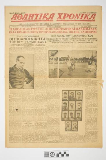Εφημερίδα "ΑΘΛΗΤΙΚΑ ΧΡΟΝΙΚΑ". Αθλητική εφημερίδα που φέρει τον τίτλο θέματος στο πρωτοσέλιδο "ΤΙ ΑΠΕΔΩΣΑΝ ΕΦΕΤΟΣ ΑΙ ΠΟΔΟΣΦΑΙΡΙΚΑΙ ΜΑΣ ΟΜΑΔΕΣ ΚΑΤΆ ΤΗΝ ΔΙΕΞΑΓΩΓΗΝ ΤΟΥ ΠΡΩΤΑΘΛΗΜΑΤΟΣ ΤΗΣ ΕΘΝ. ΚΑΤΗΓΟΡΙΑΣ". Ημερομηνία έκδοσης: ΤΕΤΑΡΤΗ 27 ΙΟΥΛΙΟΥ 1932. Αριθμός φύλλου: 51