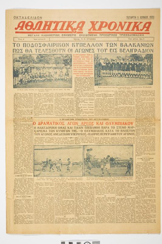 - ΕΦΗΜΕΡΙΔΑ, ΑΘΛΗΤΙΚΕΣ ΕΙΔΗΣΕΙΣ, ΑΘΛΗΤΙΚΑ ΧΡΟΝΙΚΑ, ΠΟΔΟΣΦΑΙΡΙΚΟΝ ΚΥΠΕΛΛΟΝ ΒΑΛΚΑΝΙΩΝ 1932, ΑΓΩΝΑΣ ΑΡΕΩΣ ΚΑΙ ΟΛΥΜΠΙΑΚΟΥ 1932, ΚΟΚΚΙΝΑΚΗΣ, ΚΑΛΤΕΚΗΣ, ΚΟΥΡΑΝΤΗΣ, ΣΟΦΡΑΣ, ΟΙΚΟΝΟΜΟΥ, ΦΩΤ. ΝΙΚΟΛΑΪΔΗΣ, ΚΩΝΣΤΑΝΤΙΝΟΣ ΒΙΚΕΛΙΔΗΣ