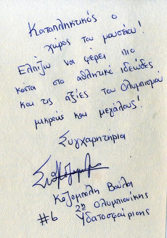 ΒΟΥΛΑ ΚΟΖΟΜΠΟΛΗ, ΥΔΑΤΟΣΦΑΙΡΙΣΗ, ΟΛΥΜΠΙΟΝΙΚΗΣ