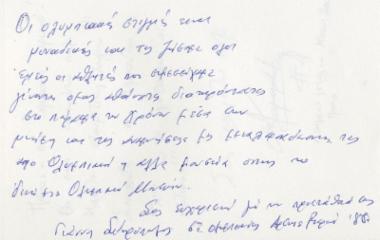 Χειρόγραφη αφιέρωση και υπογραφή του αθλητή της άρσης βαρών Ιωάννη Σιδηρόπουλος. (EL)