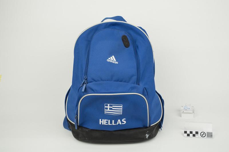 Σακίδιο μπλε χρώματος με μάυρη βάση και λευκές λεπτομέρειες