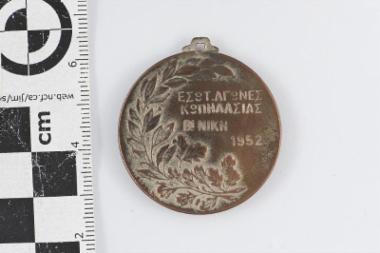Μετάλλιο που απονεμήθηκε στον αθλητή Κεχαγιά Σπύρο για την διάκριση του στους Εσωτερικούς Αγώνες Κωπηλασίας το 1952. Η εμπρόσθια όψη φέρει ανάγλυφη απεικόνιση ιστιοπλοϊκού σκάφους και αναγράφεται περιμετρικά αυτού "ΙΣΤΙΟΠΛΟΪΚΟΣ ΟΜΙΛΟΣ Θ-ΚΗΣ". Στην πίσω όψη εικονίζεται ένα κλαδί δάφνης και αναγράφεται "ΕΣΩΤ. ΑΓΩΝΕΣ ΚΩΠΗΛΑΣΙΑΣ Β!ΝΙΚΗ 1952".