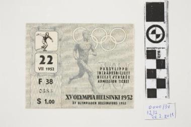 Εισιτήριο για την παρακολούθηση αγωνισμάτων στίβου στους Ολυμπιακούς Αγώνες στο Ελσίνκι το 1952. (EL)