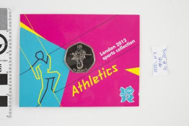 Πεντάπτυχο με αναμνηστικά νομίσματα των Ολυμπιακών Αγώνων του Λονδίνου. Το λεύκωμα περιλαμβάνει συνολικά τριάντα νομίσματα. Κάθε ένα από τα εικοσιεννέα νομίσματα εικονίζει στην εμπρόσθια όψη του την Βασίλισσα Ελισάβετ και στην πίσω ένα από τα αθλήματα των Ολυμπιακών και Παραολυμπιακών Αγώνων. Ένα νόμισμα εικονίζει στην πίσω όψη το Ολυμπιακό στάδιο.