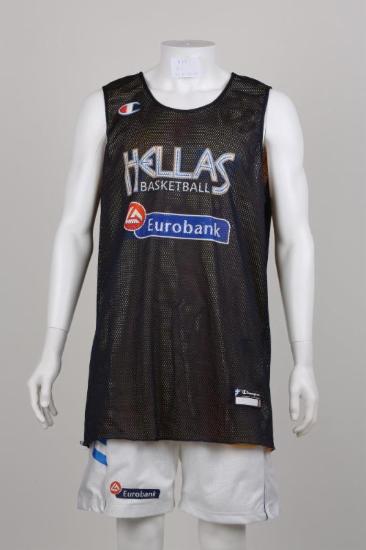 Φανέλα προπονητικής του αθλητή Κώστα Σλούκα, κίτρινου και μπλε χρώματος. Φέρει το λογότυπο της εθνικής ομάδας και το σήμα CHAMPION