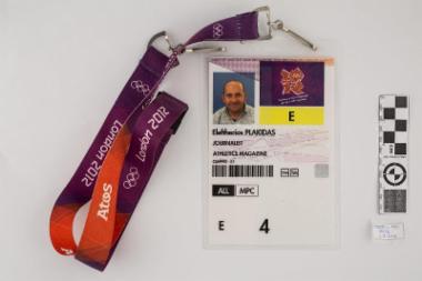 Κάρτα διαπίστευσης του δημοσιογράφου Πλακίδα Ελευθέριου από τους Ολυμπιακούς Αγώνες του Λονδίνου 2012. (EL)