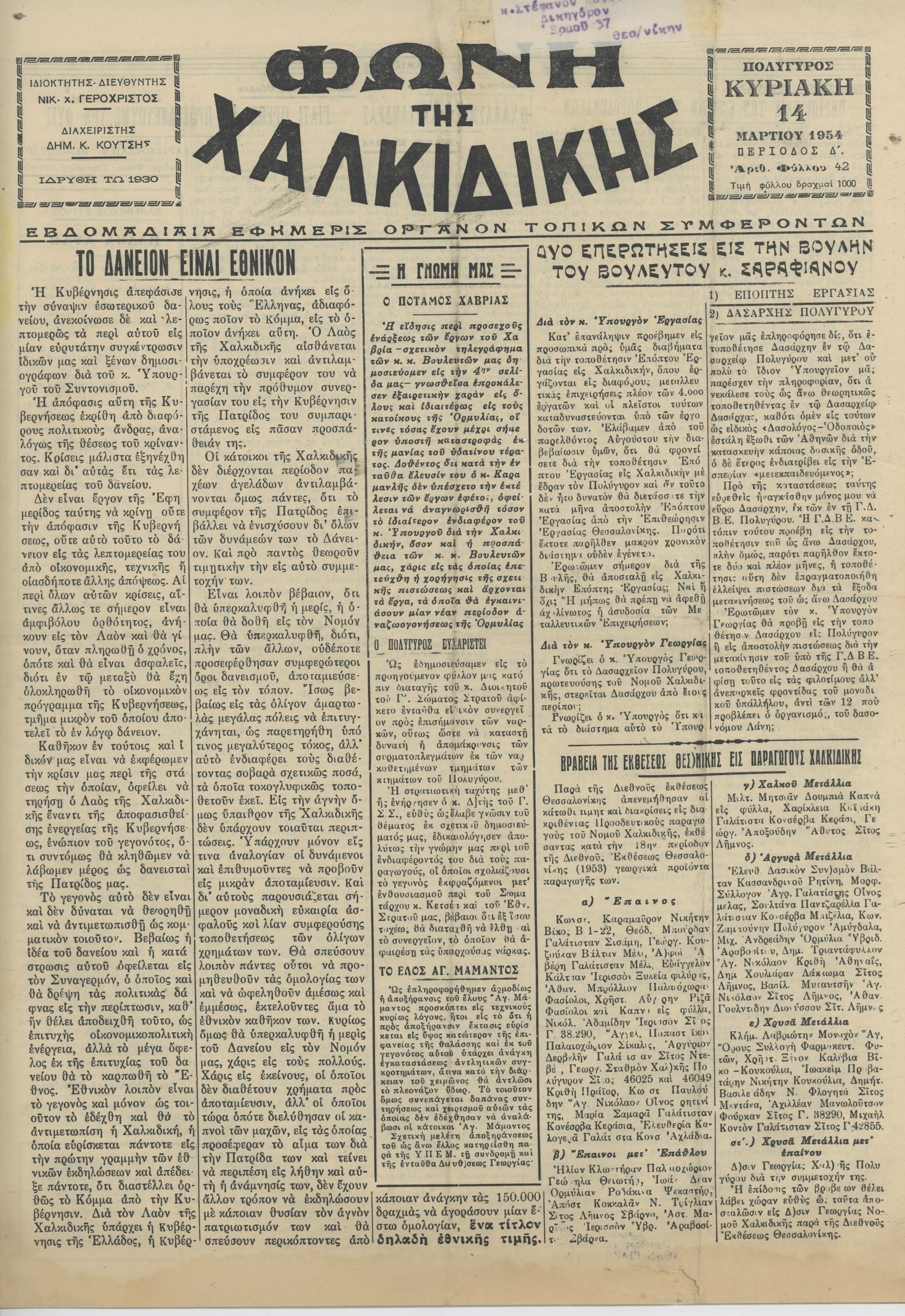Φωνή της Χαλκιδικής 14-03-54 Αρ. Φύλλου 42