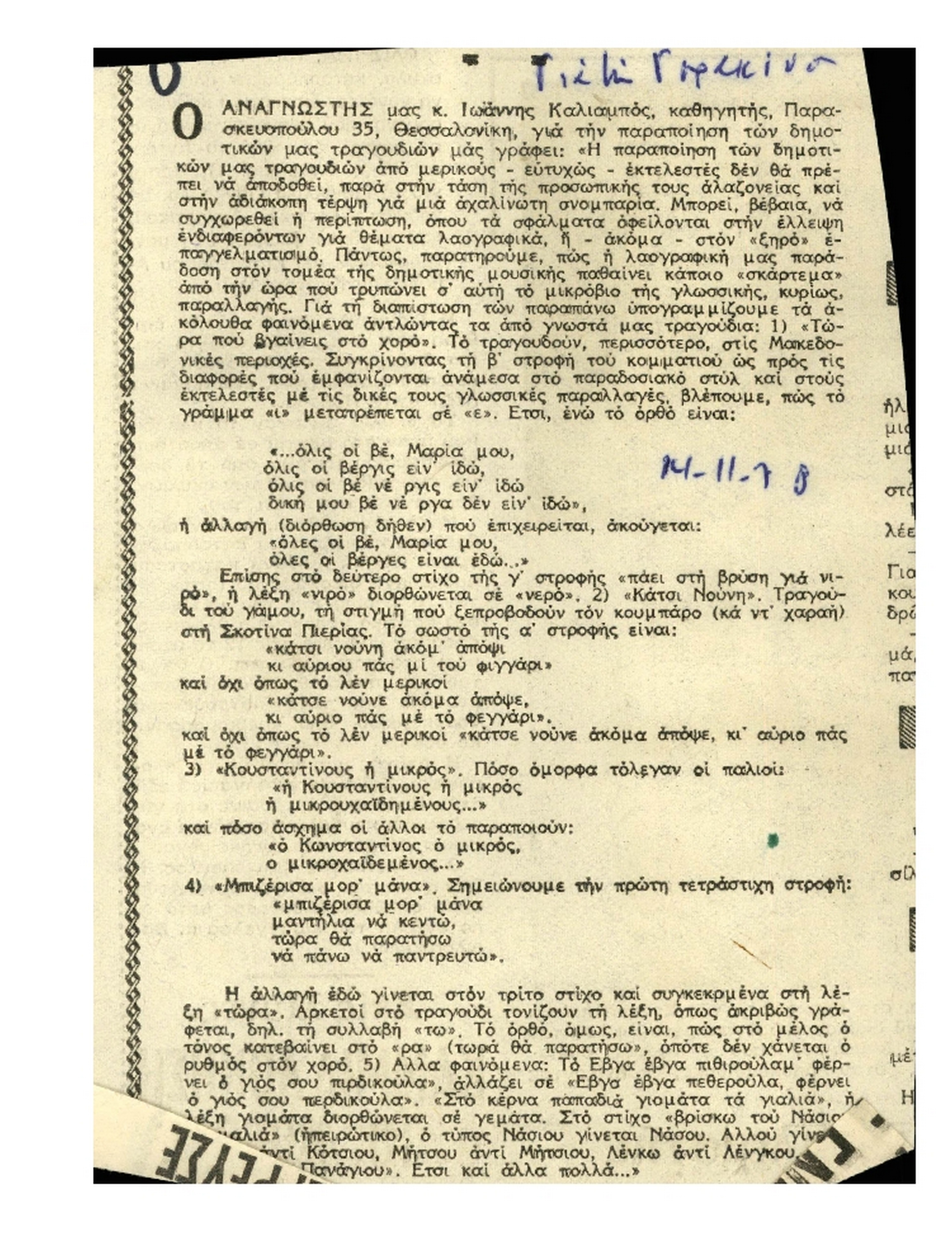Αποκόμματα Εφημερίδων Τραγούδια Νο 4