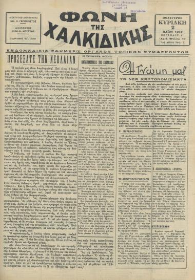Φωνή της Χαλκιδικής 02-05-54 Αρ. Φύλλου 49