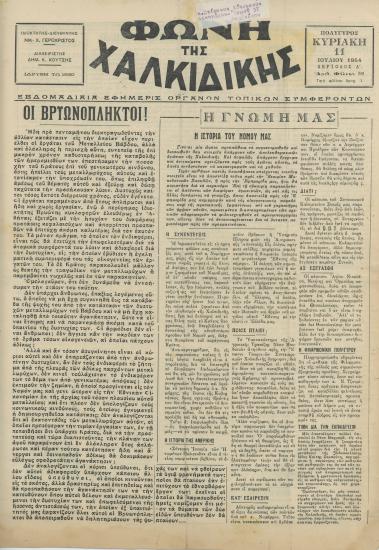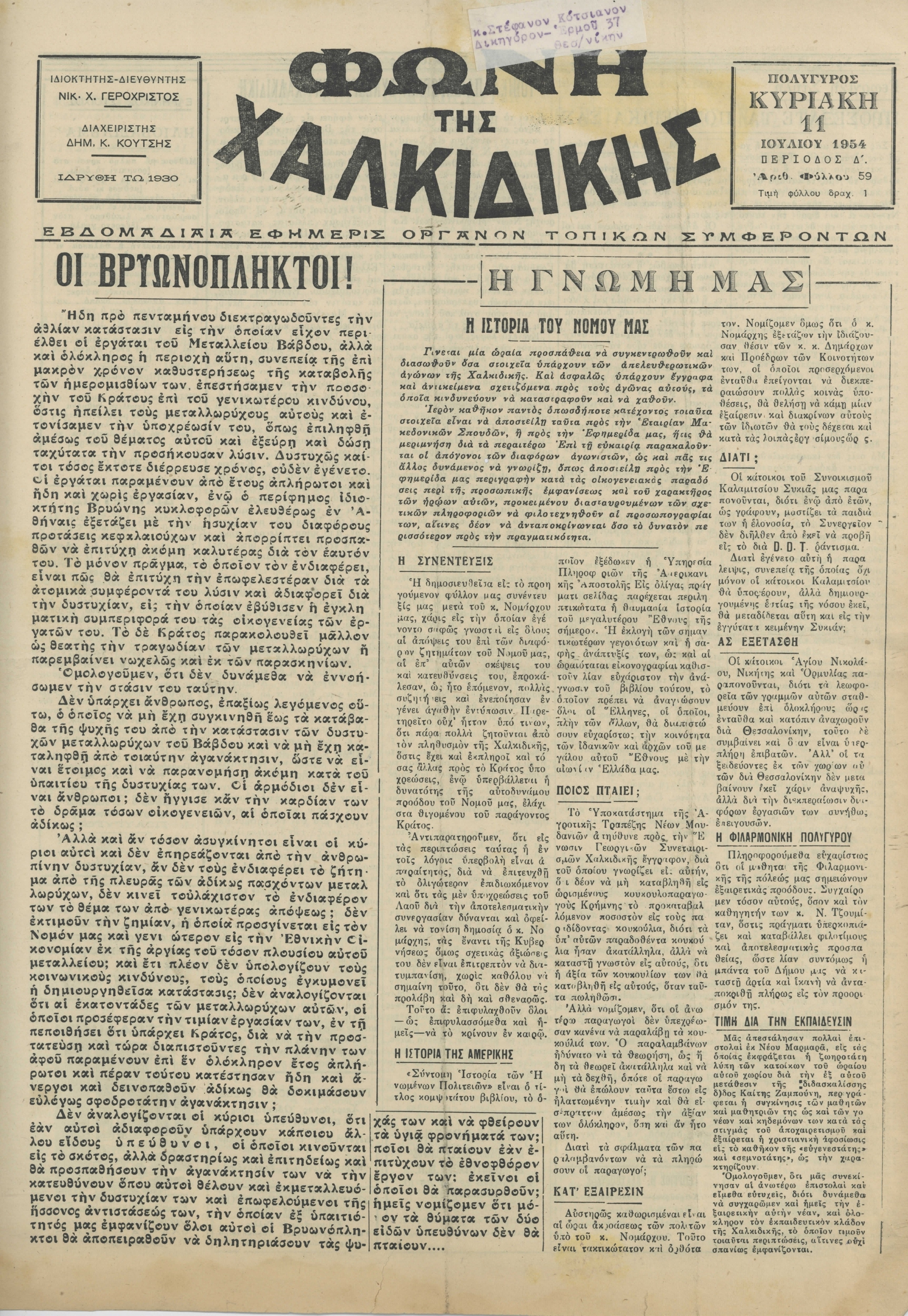 Φωνή της Χαλκιδικής 11-07-54 Αρ. Φύλλου 59