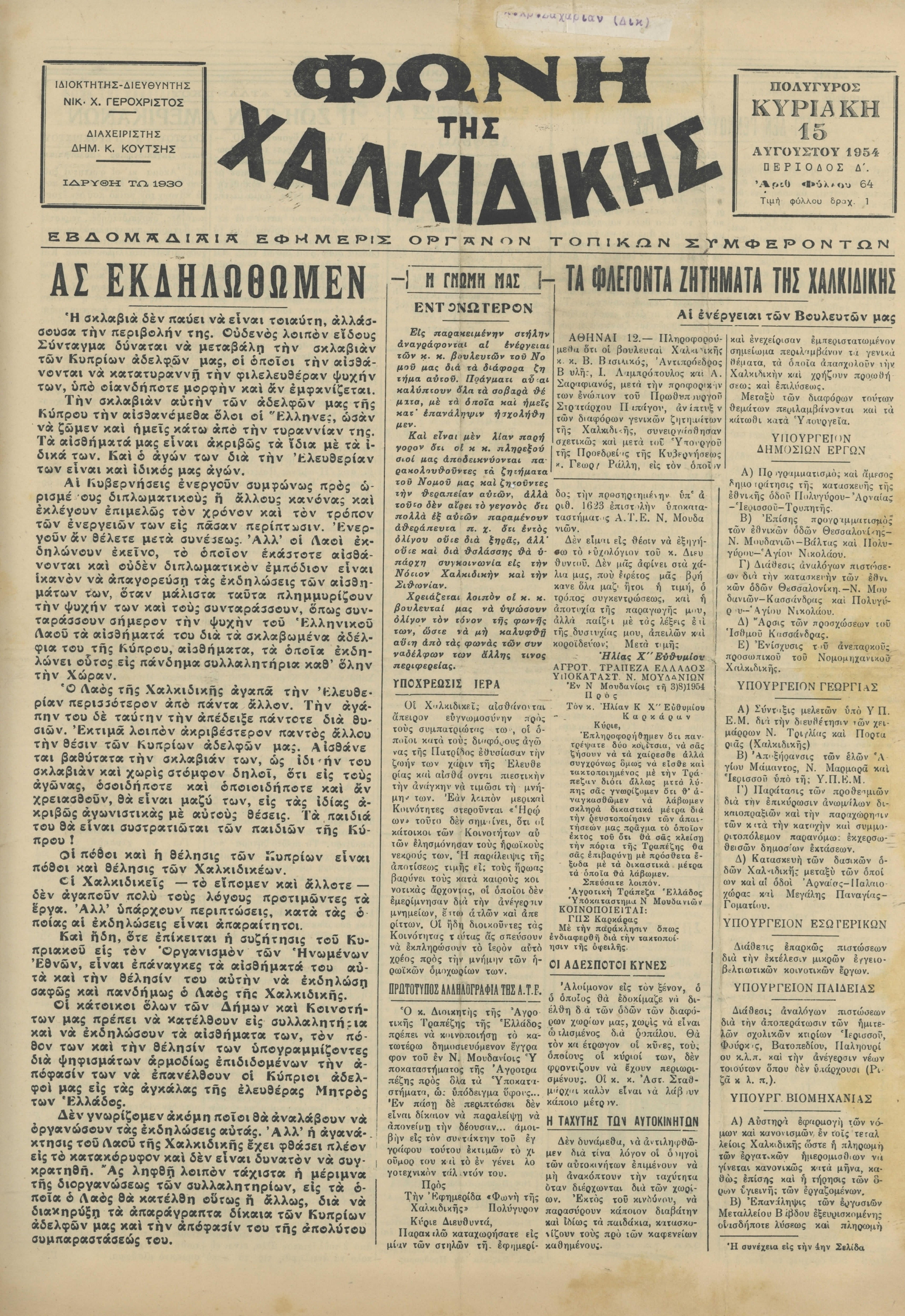 Φωνή της Χαλκιδικής 15-08-54 Αρ. Φύλλου 64