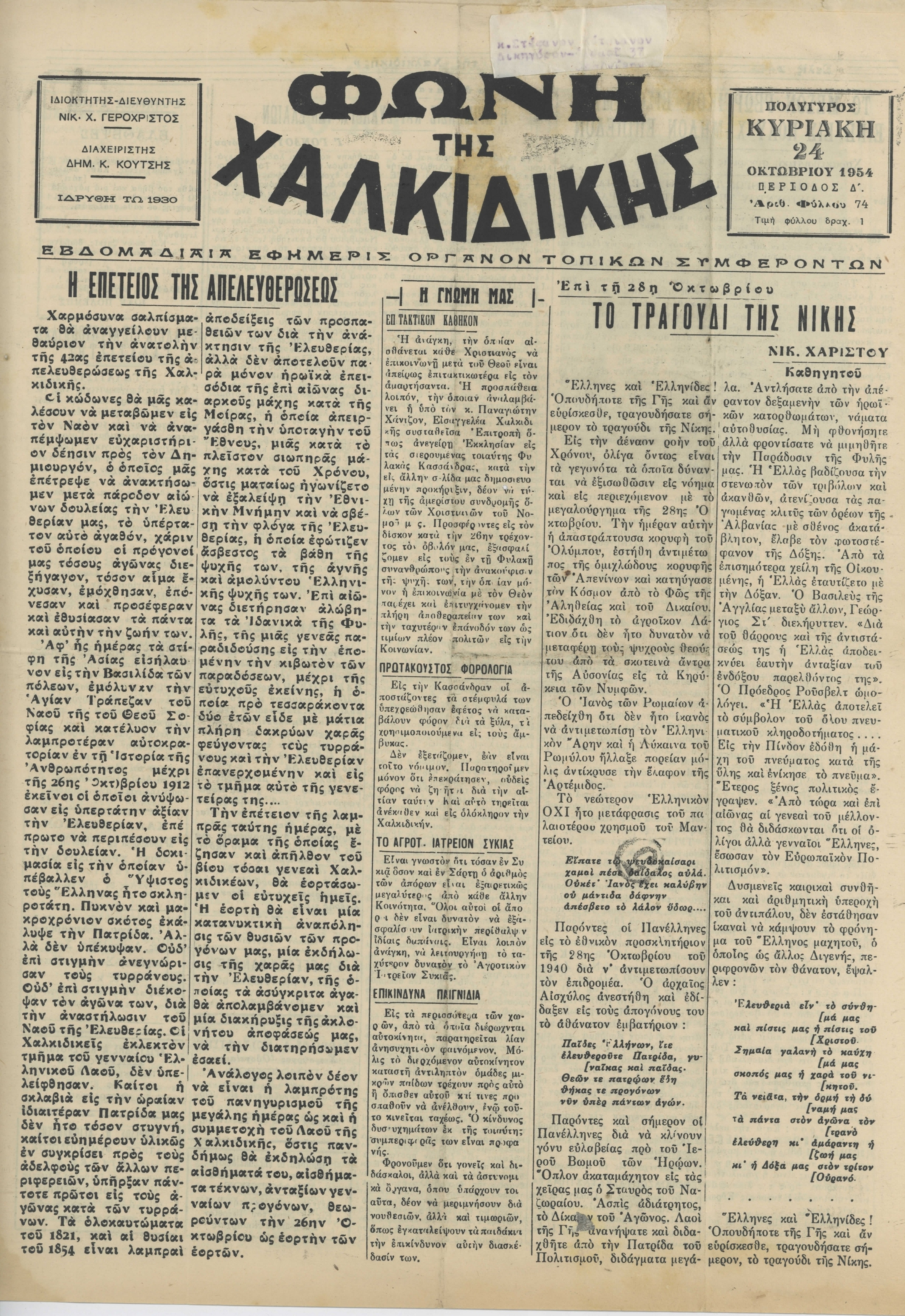 Φωνή της Χαλκιδικής 24-10-54 Αρ. Φύλλου 74