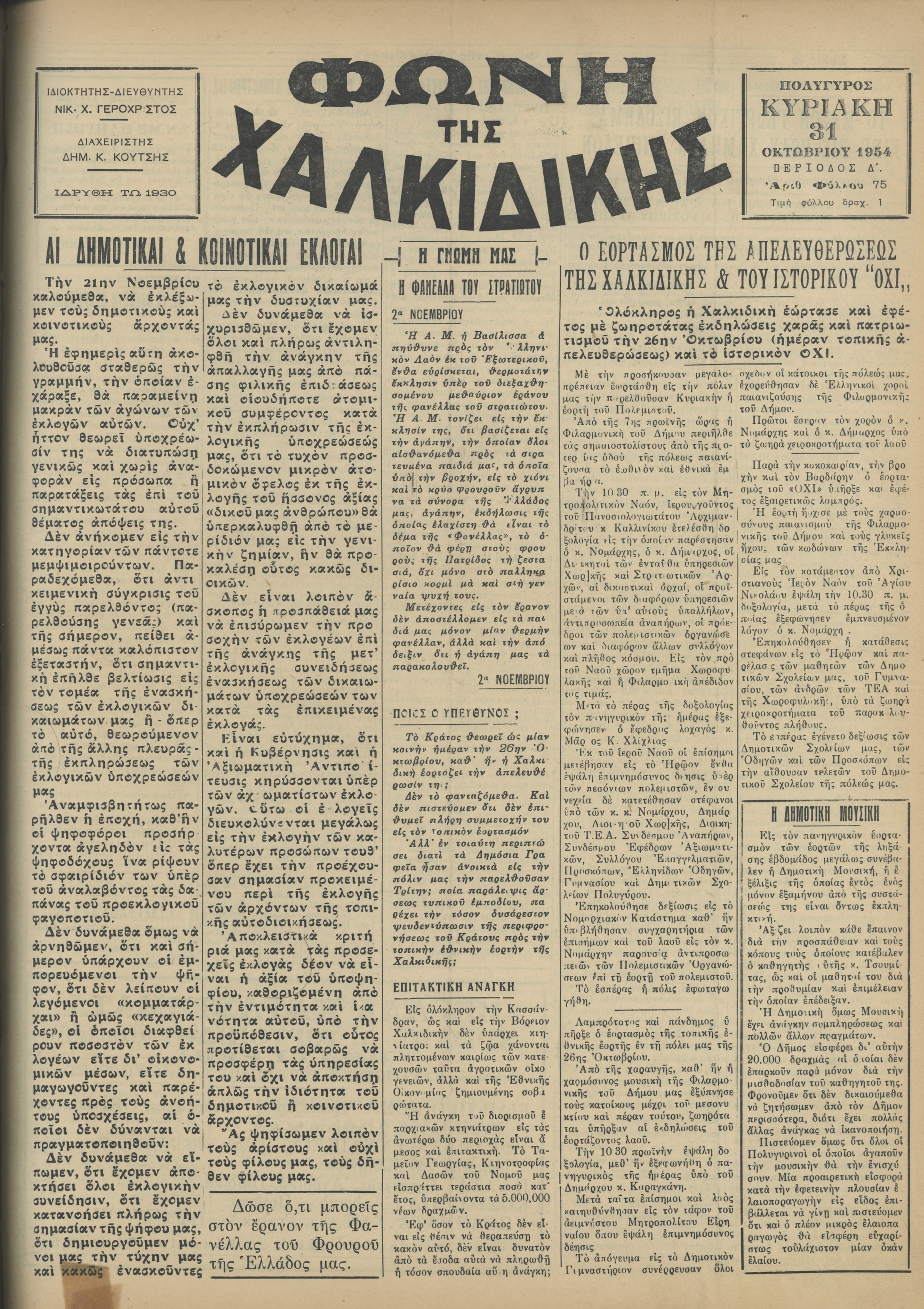 Φωνή της Χαλκιδικής 31-10-54 Αρ. Φύλλου 75