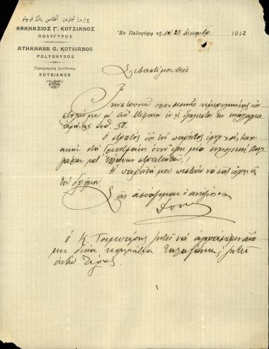 Φάκελος Νο 12 1905-1919 Επιστολή Νο 30