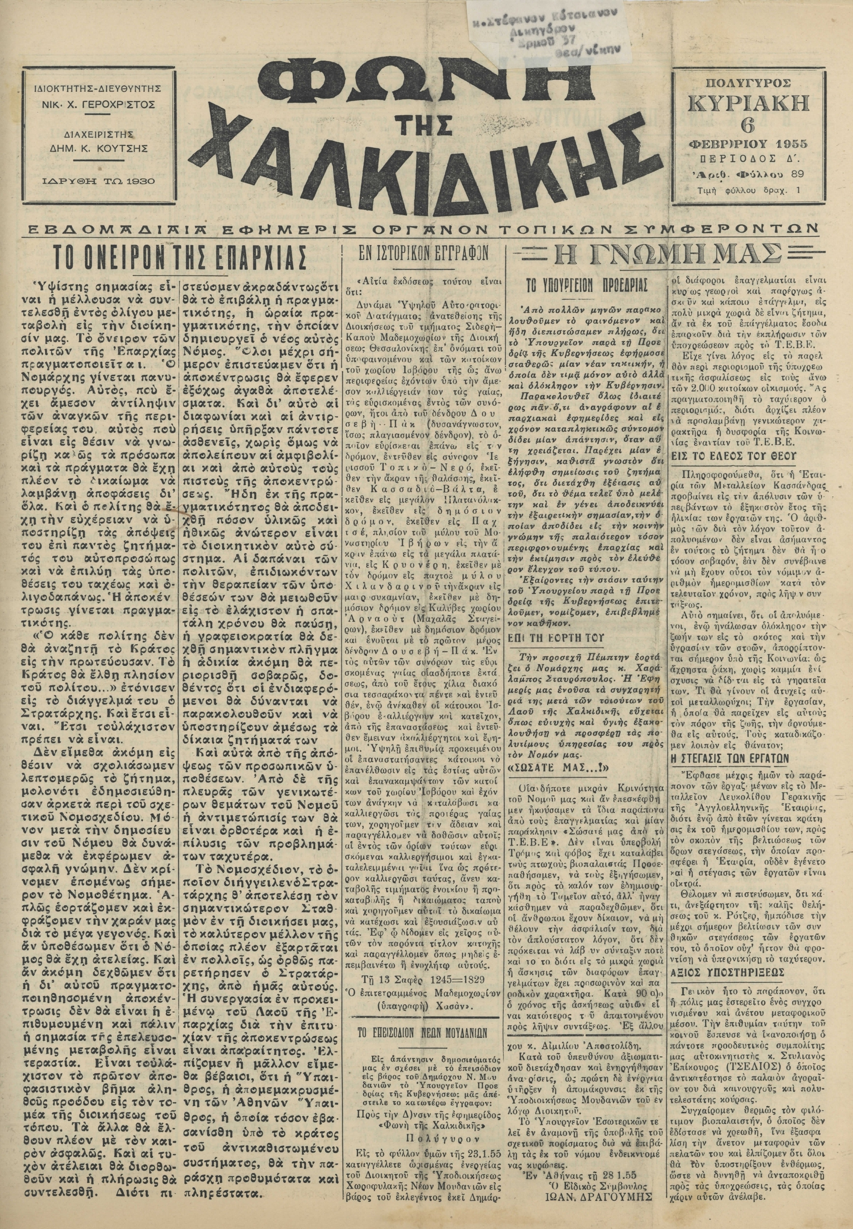 Φωνή της Χαλκιδικής 06-02-55 Αρ. Φύλλου 89
