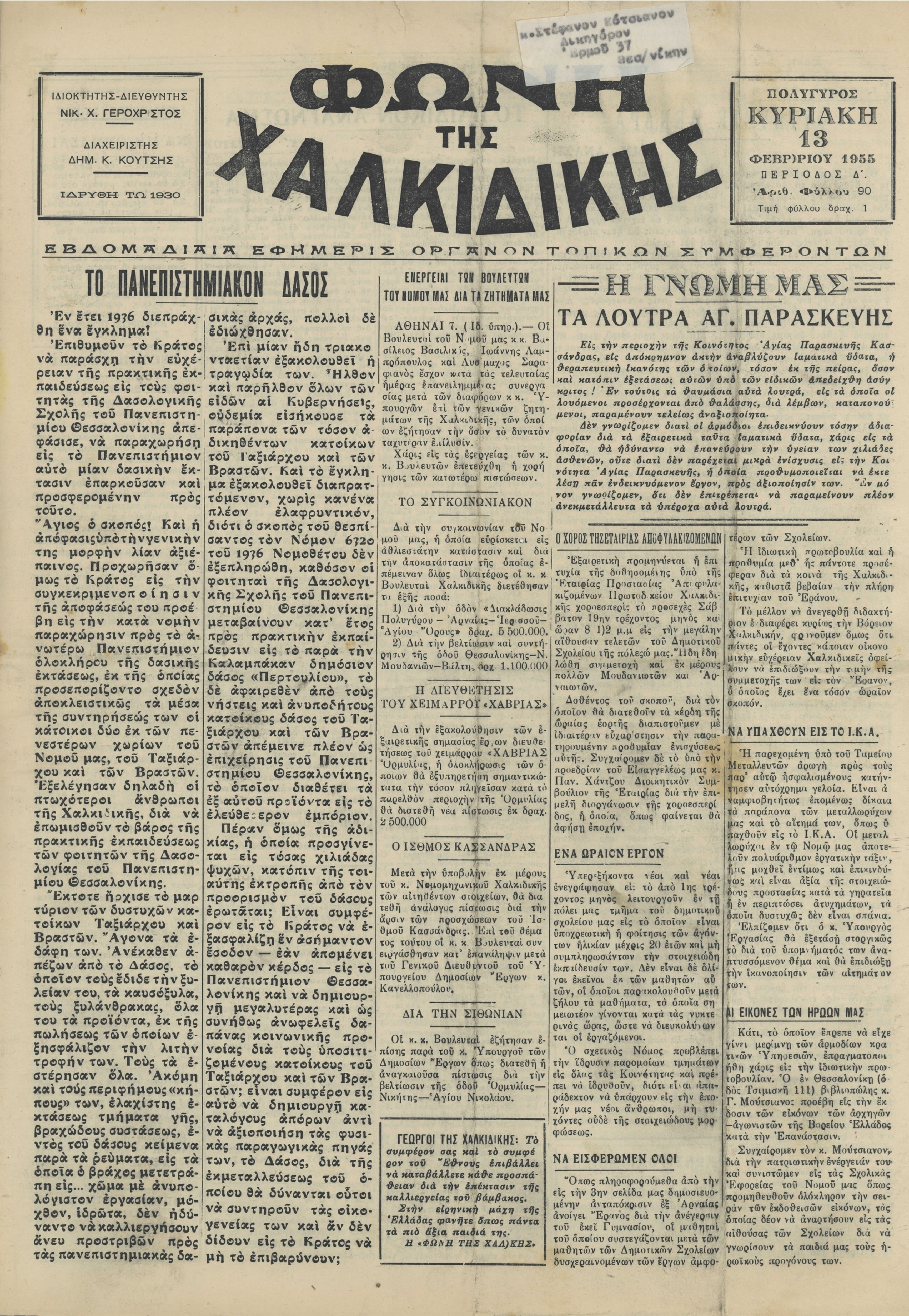 Φωνή της Χαλκιδικής 13-02-55 Αρ. Φύλλου 90