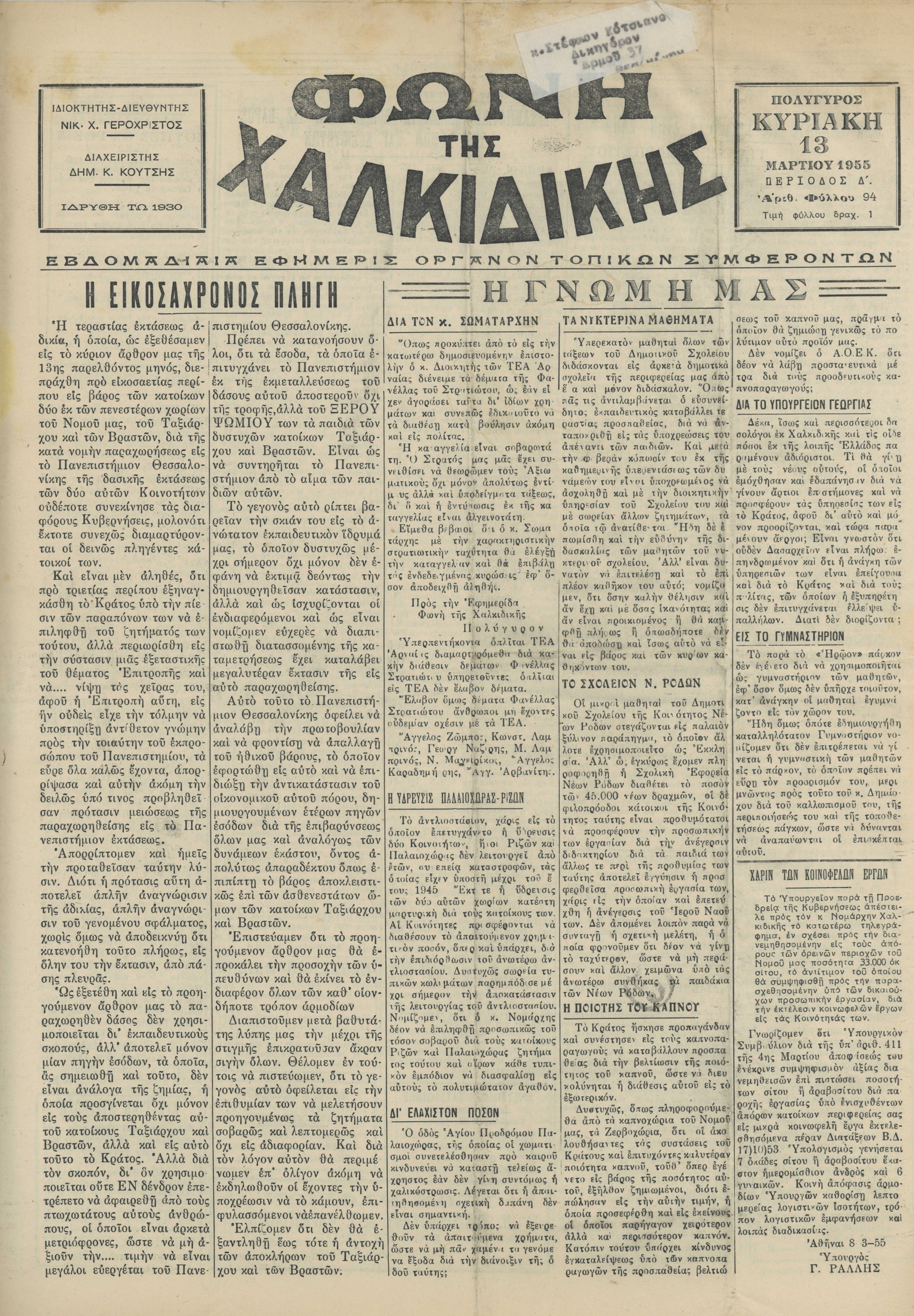 Φωνή της Χαλκιδικής 13-03-55 Αρ. Φύλλου 94