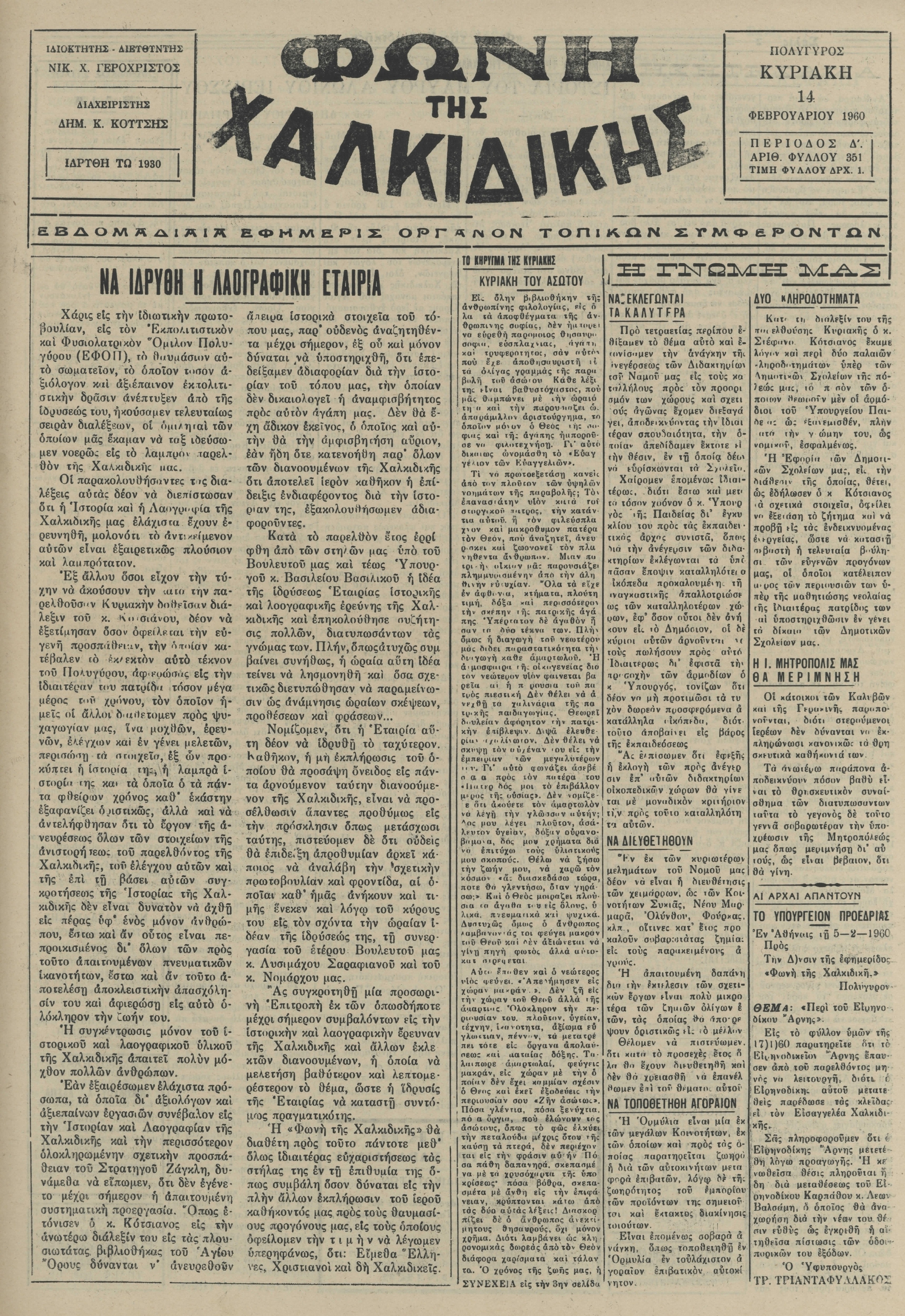 Φωνή της Χαλκιδικής 14-02-60 Αρ. Φύλλου 351