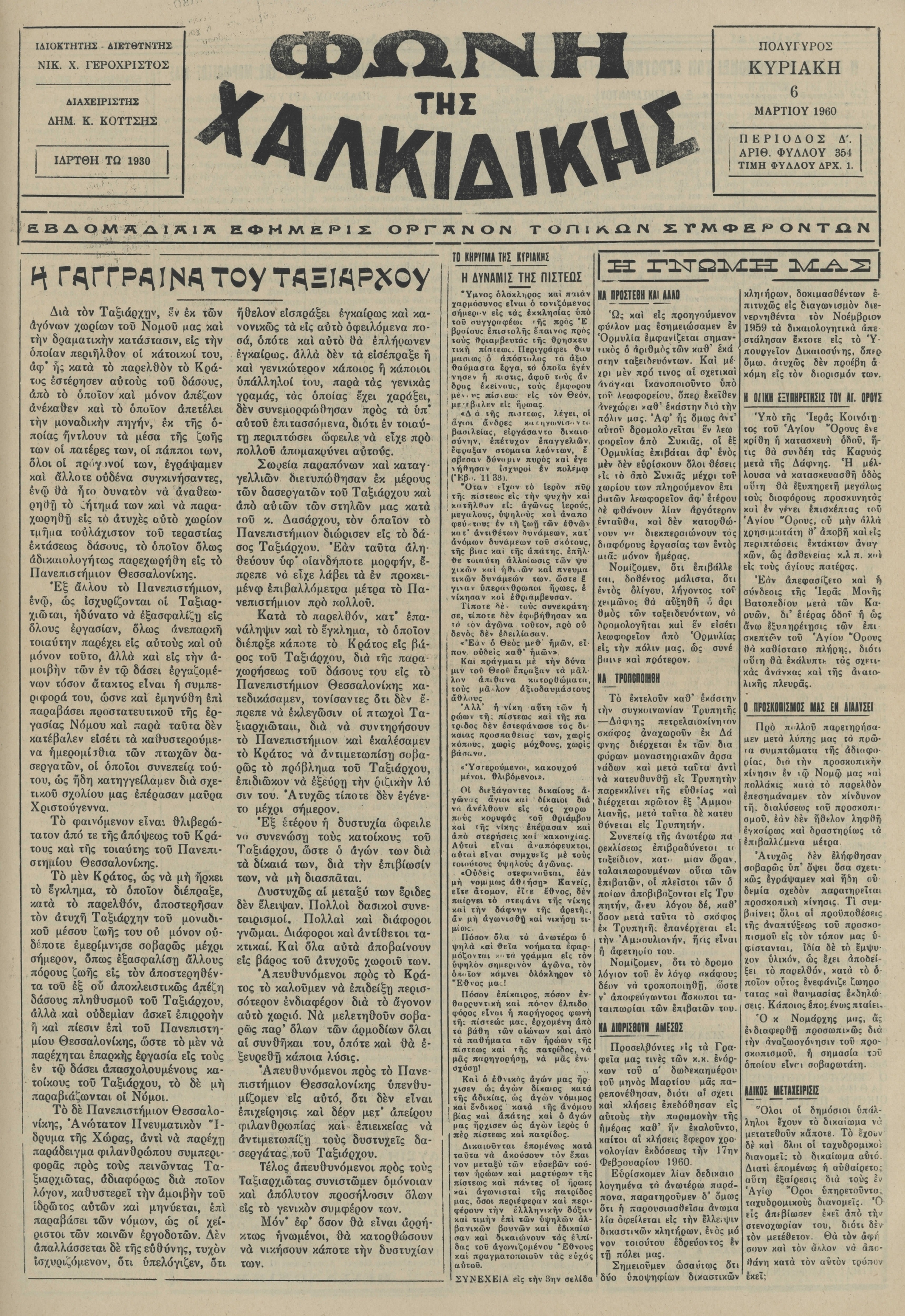 Φωνή της Χαλκιδικής 06-03-60 Αρ. Φύλλου 354