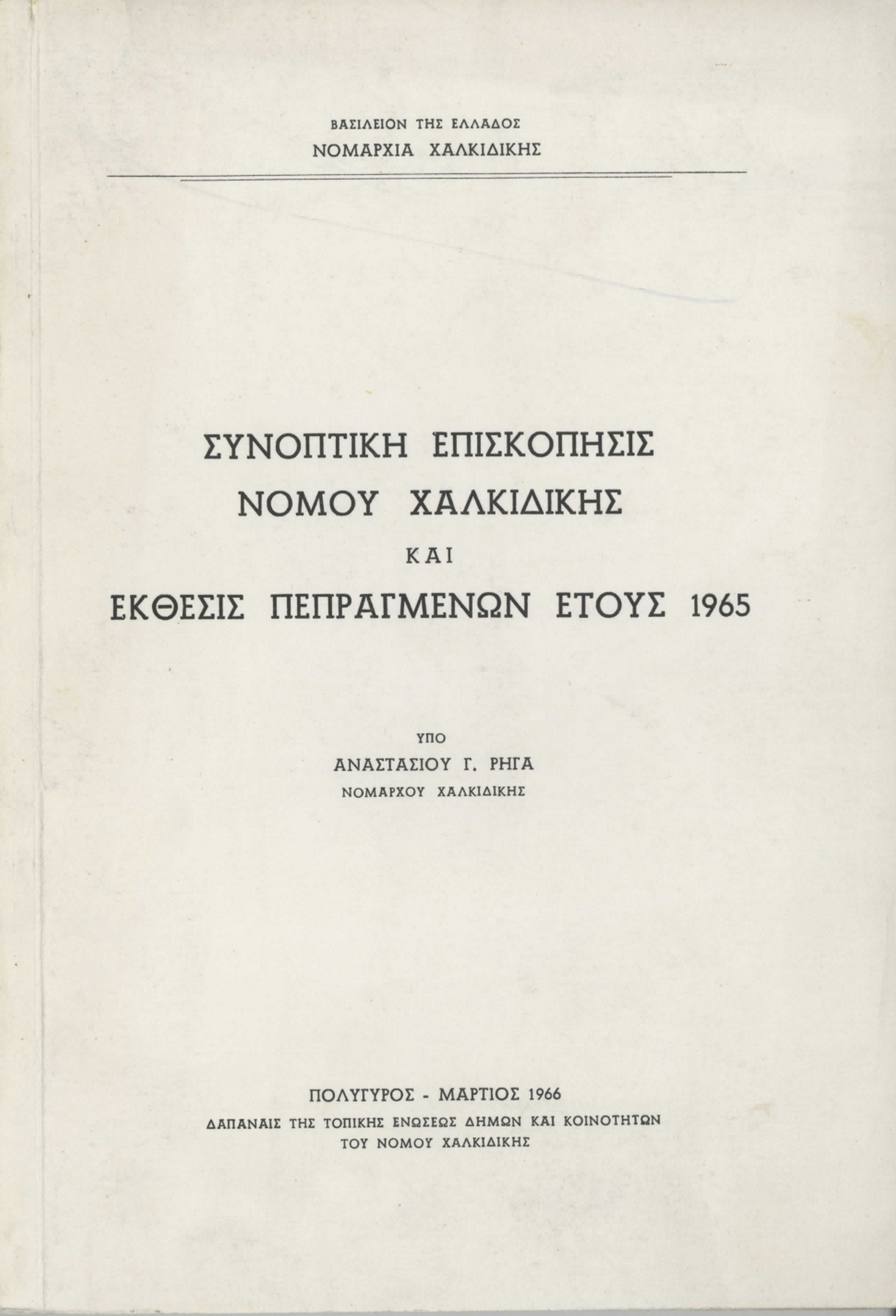 Συνοπτική επισκόπησις Νομού Χαλκιδικής και έκθεσις πεπραγμένων έτους 1965